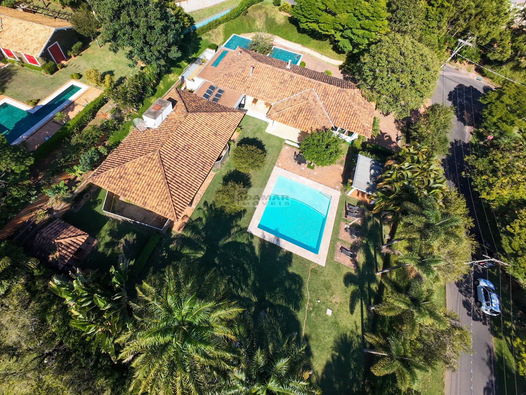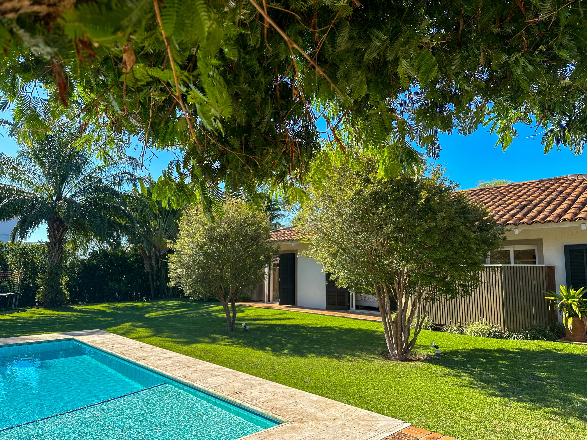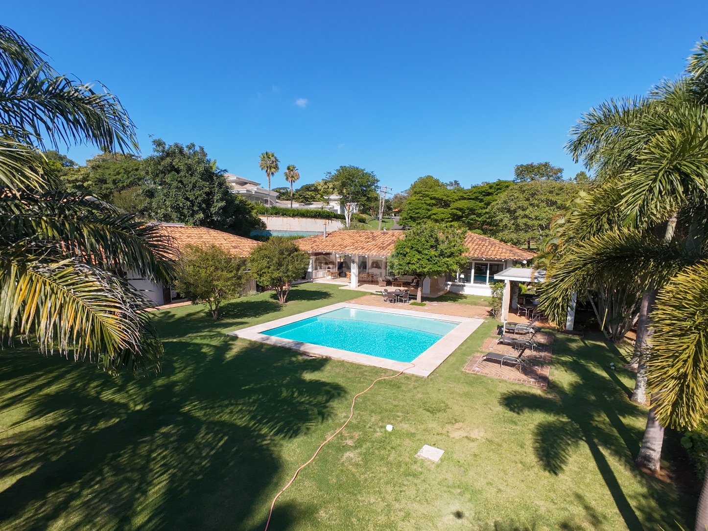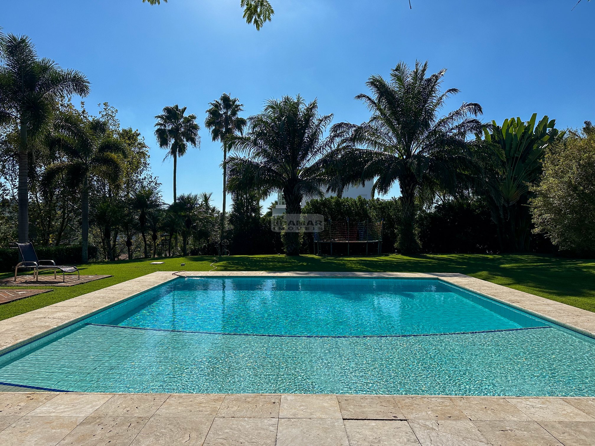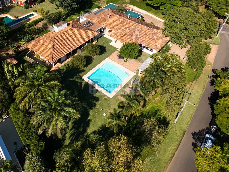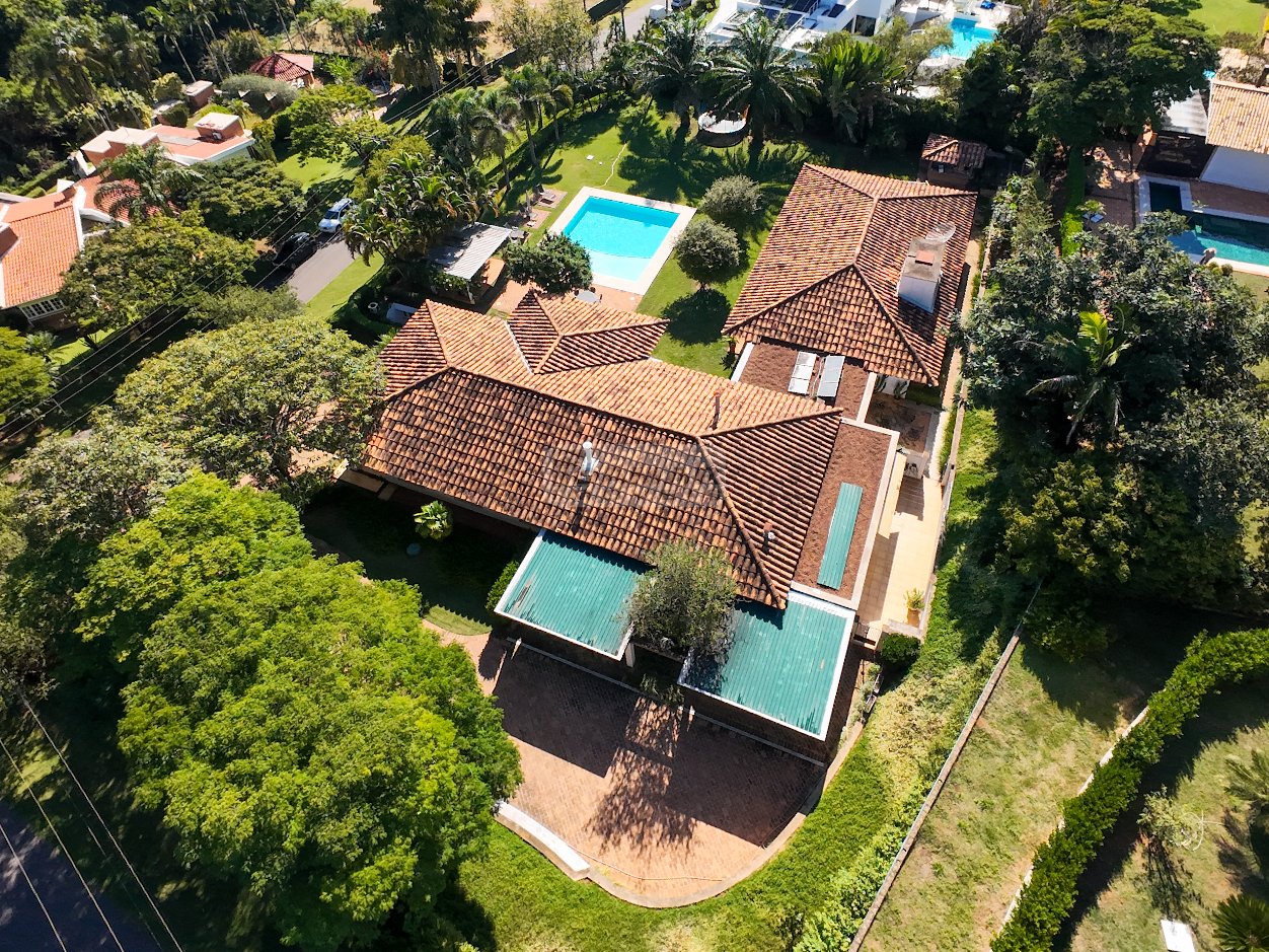 Totalmente térrea, 5 suítes, espaço gourmet integrado à área social, sauna, piscina aquecida e total privacidade, num terreno se esquina de aproximadamente 2.800m² e uma área construída de 680m².