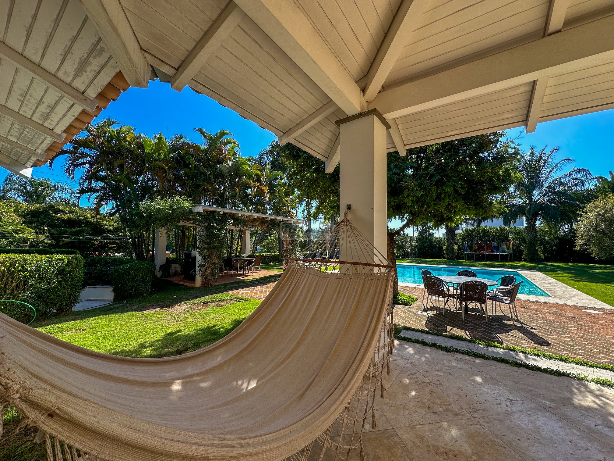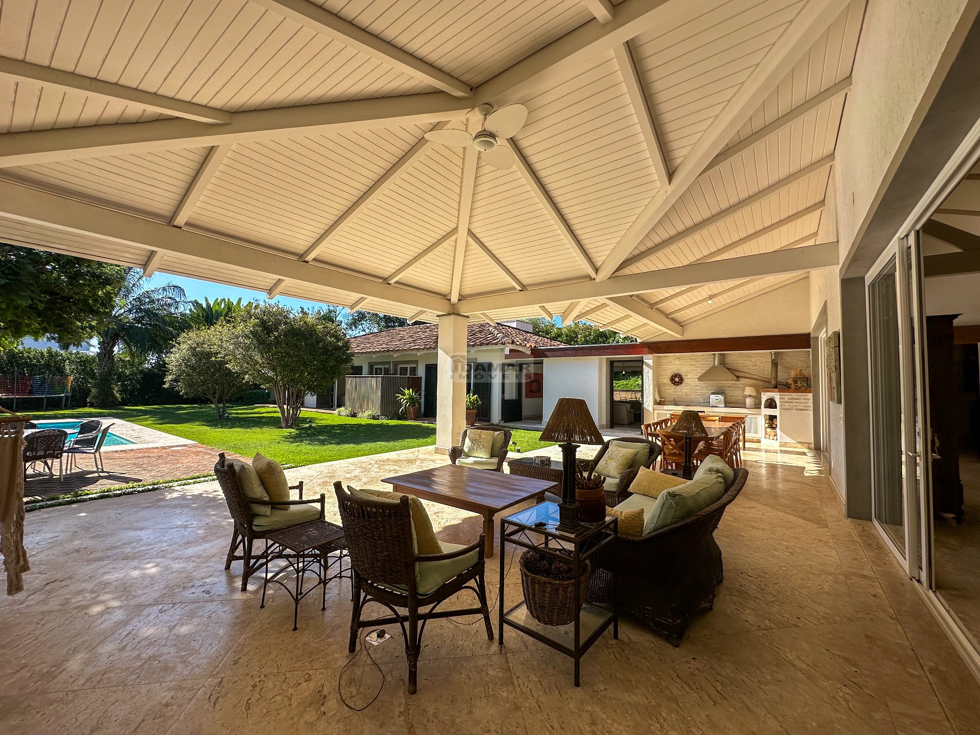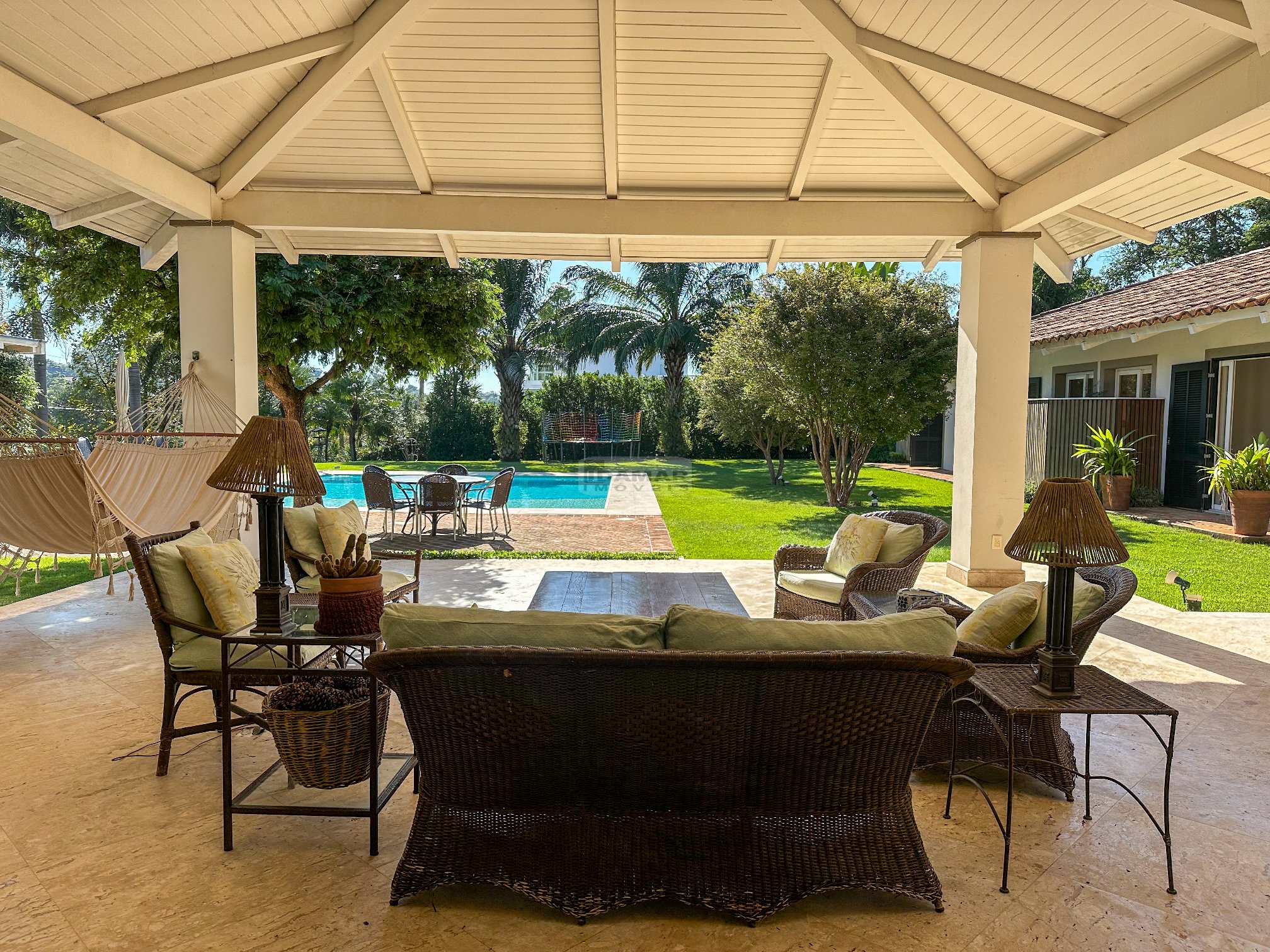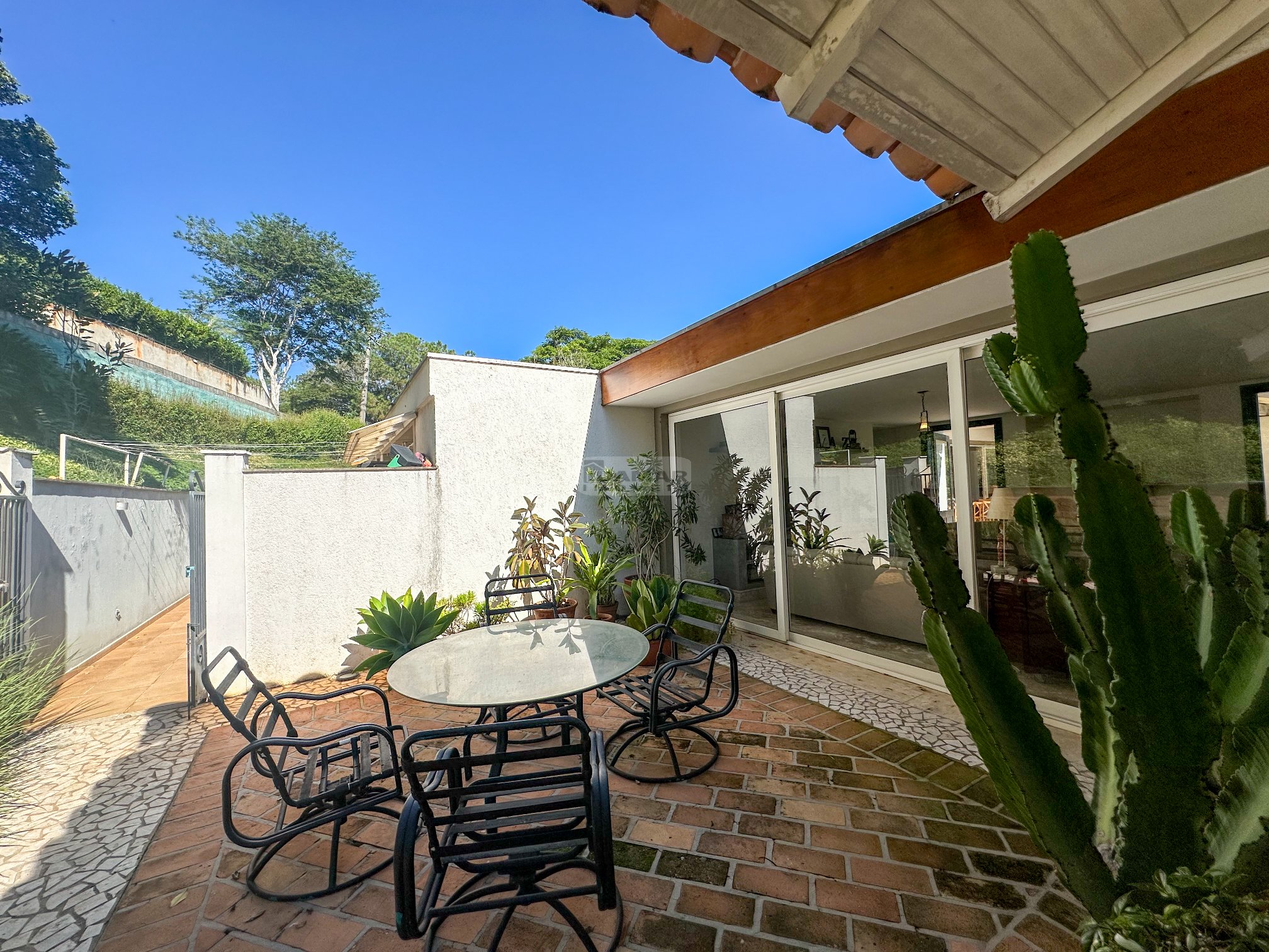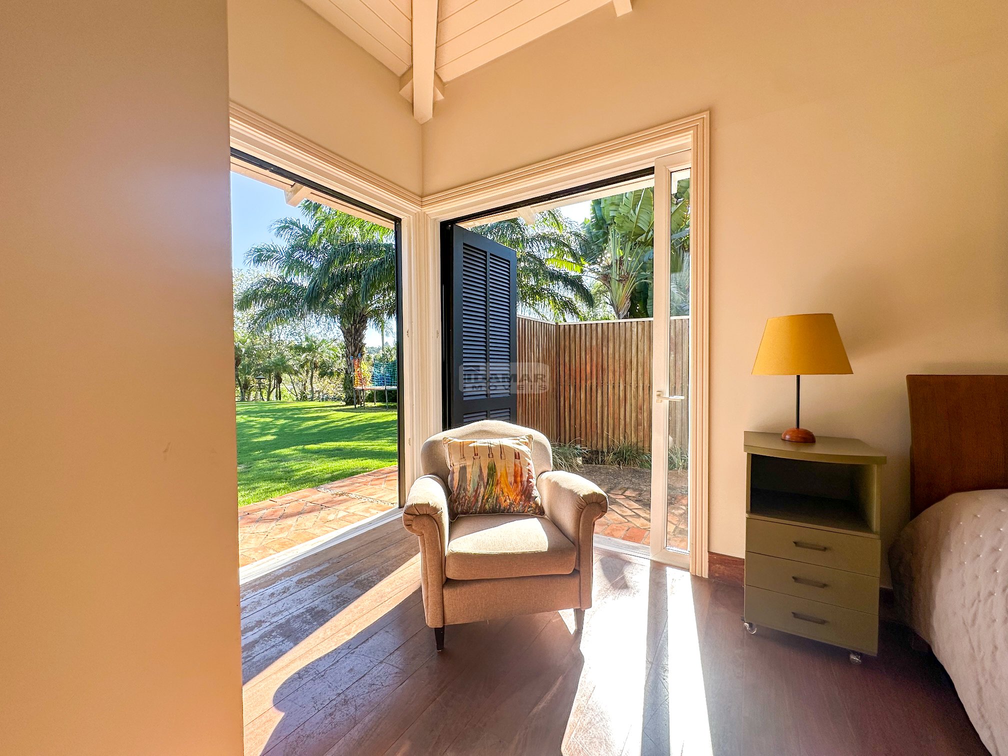 Totalmente térrea, 5 suítes, espaço gourmet integrado à área social, sauna, piscina aquecida e total privacidade, num terreno se esquina de aproximadamente 2.800m² e uma área construída de 680m².