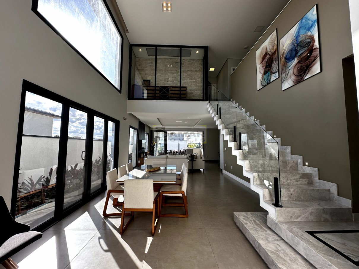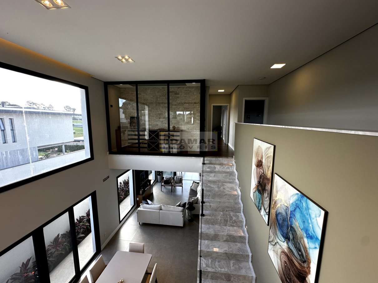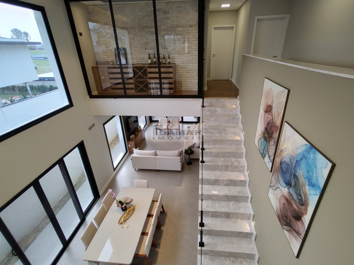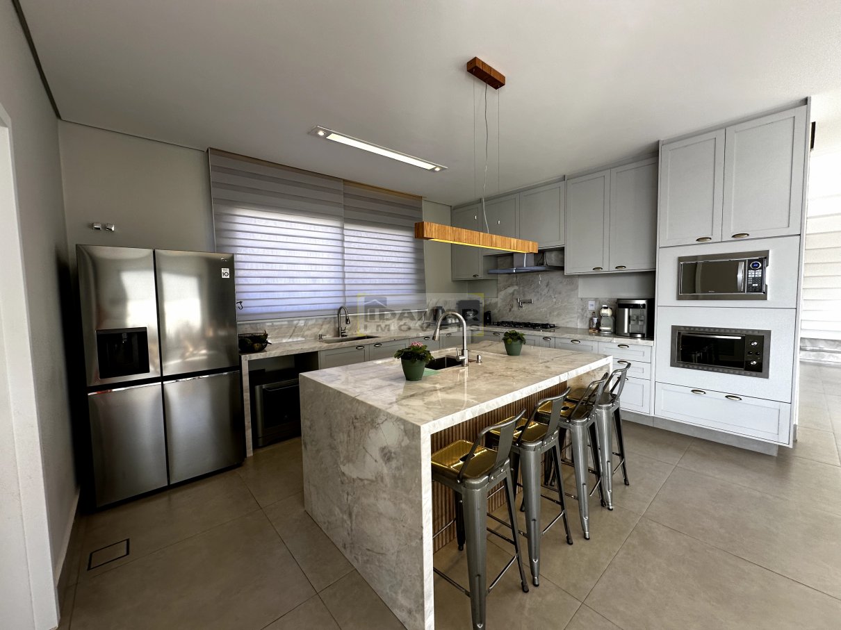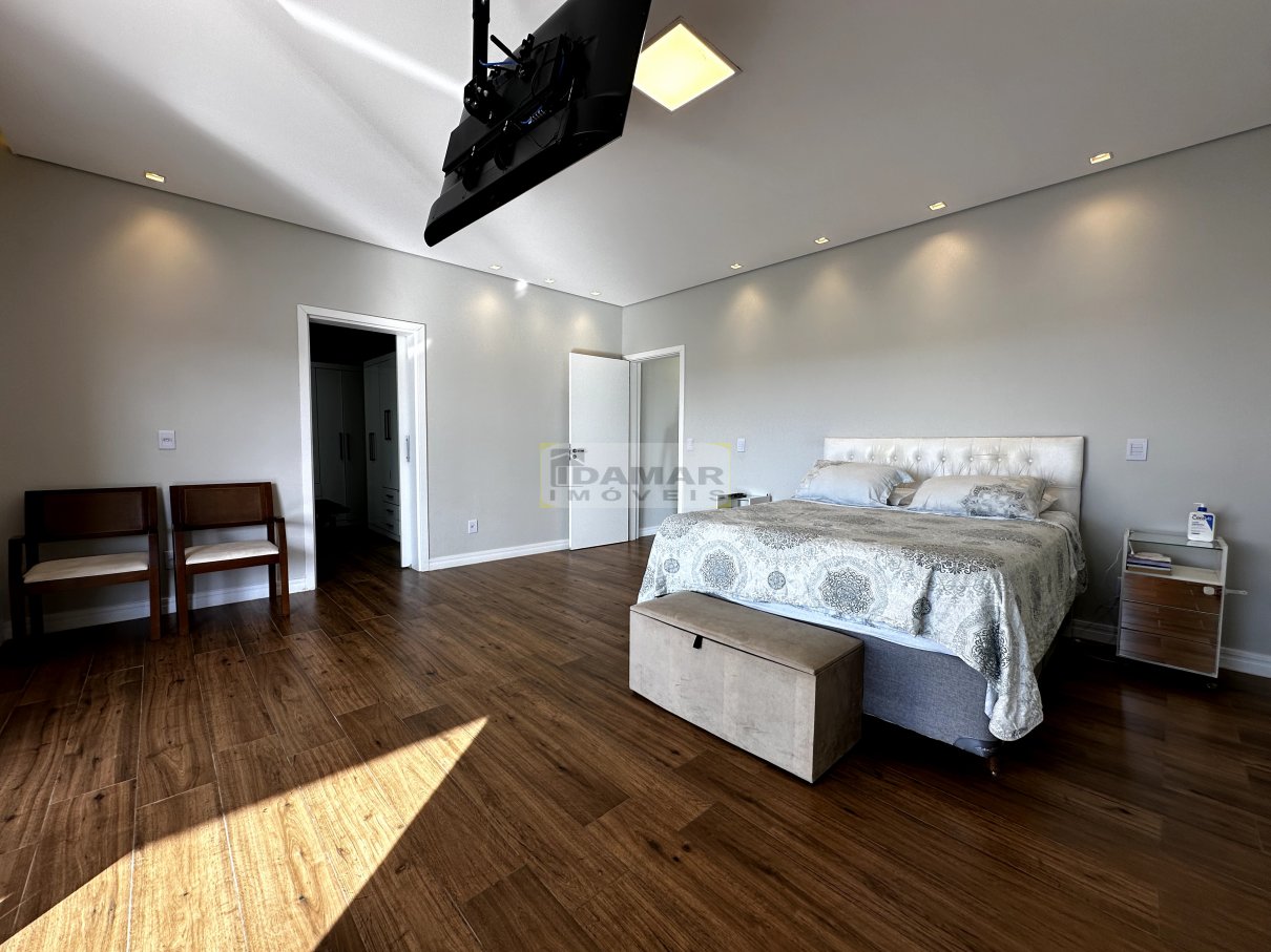 Sala de estar, sala de jantar, copa, adega, cozinha, área de serviço, 2 lavabo, 4 suítes, 3 closet, escritório, área gourmet, varanda, depósito