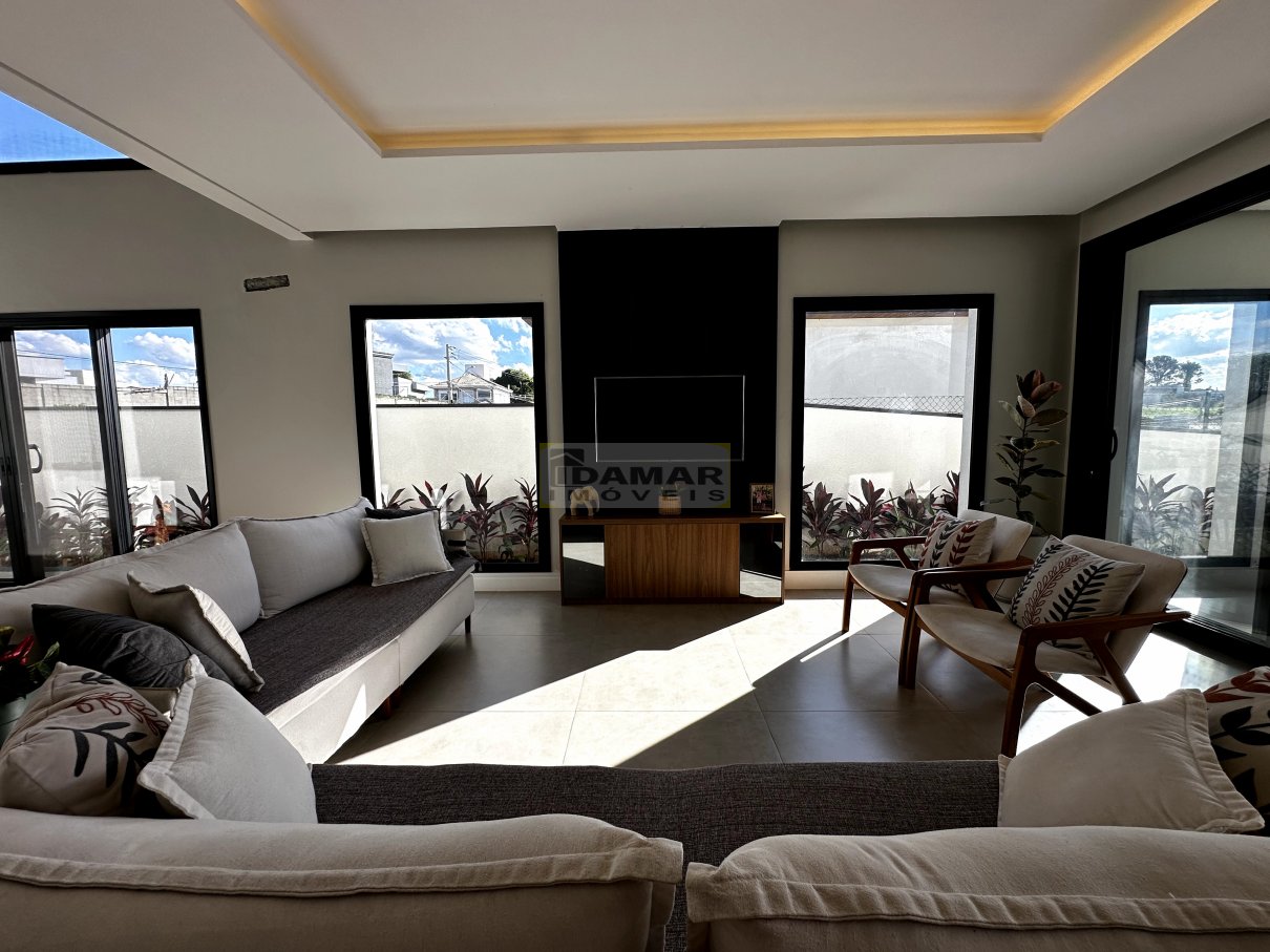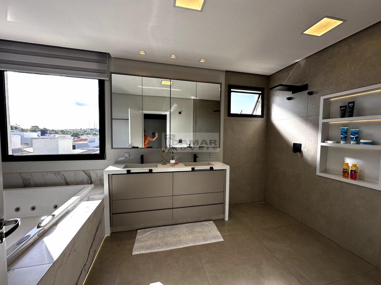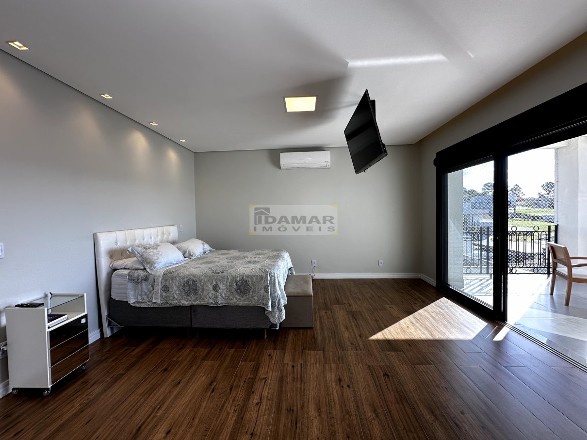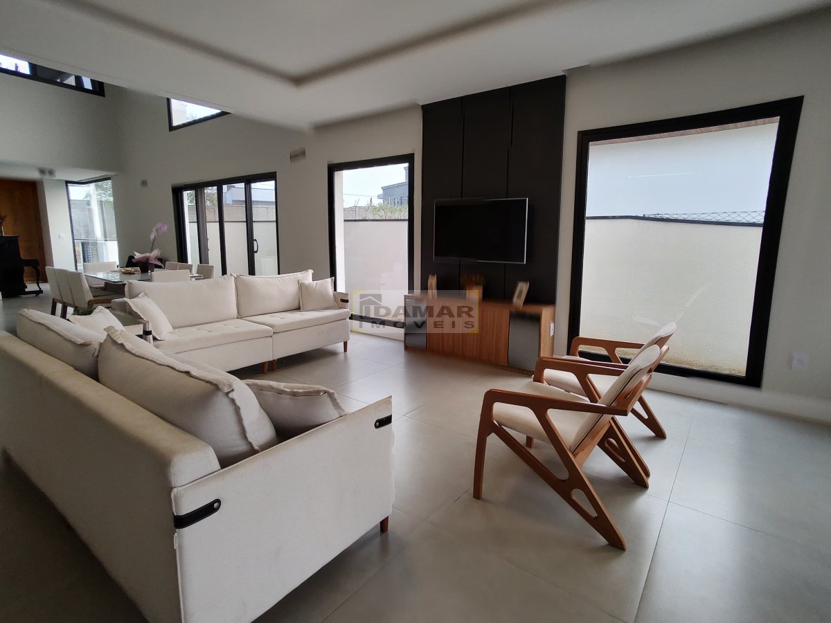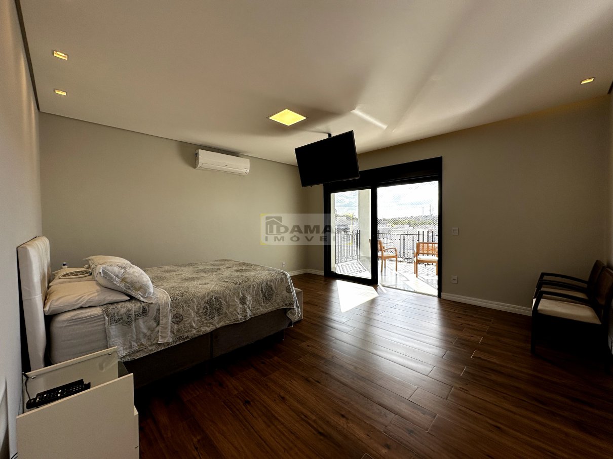 Sala de estar, sala de jantar, copa, adega, cozinha, área de serviço, 2 lavabo, 4 suítes, 3 closet, escritório, área gourmet, varanda, depósito