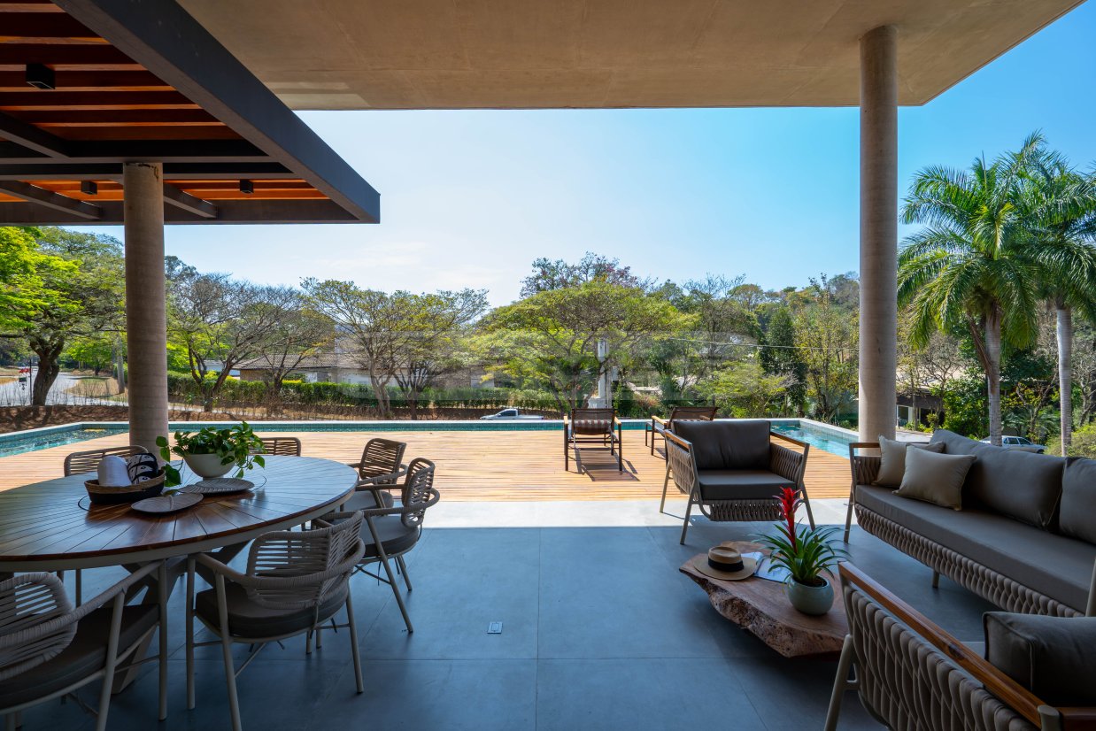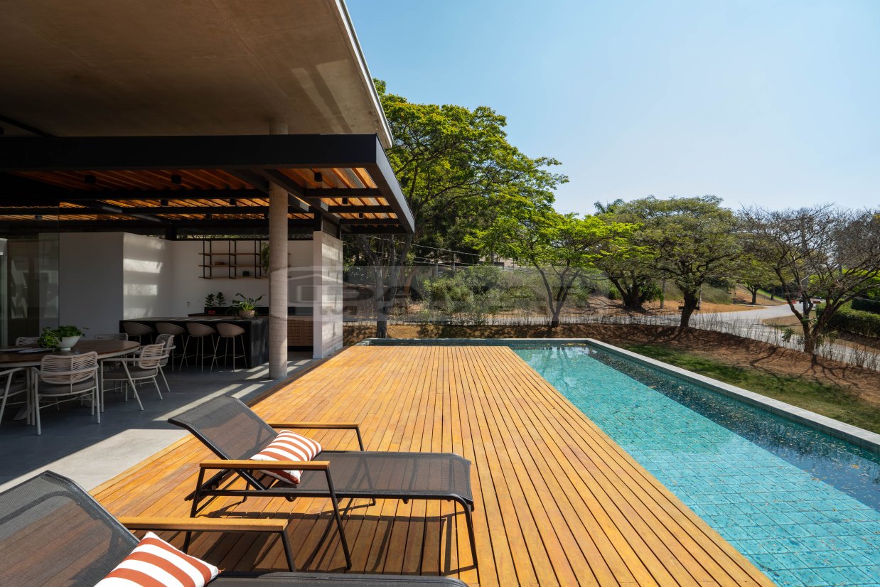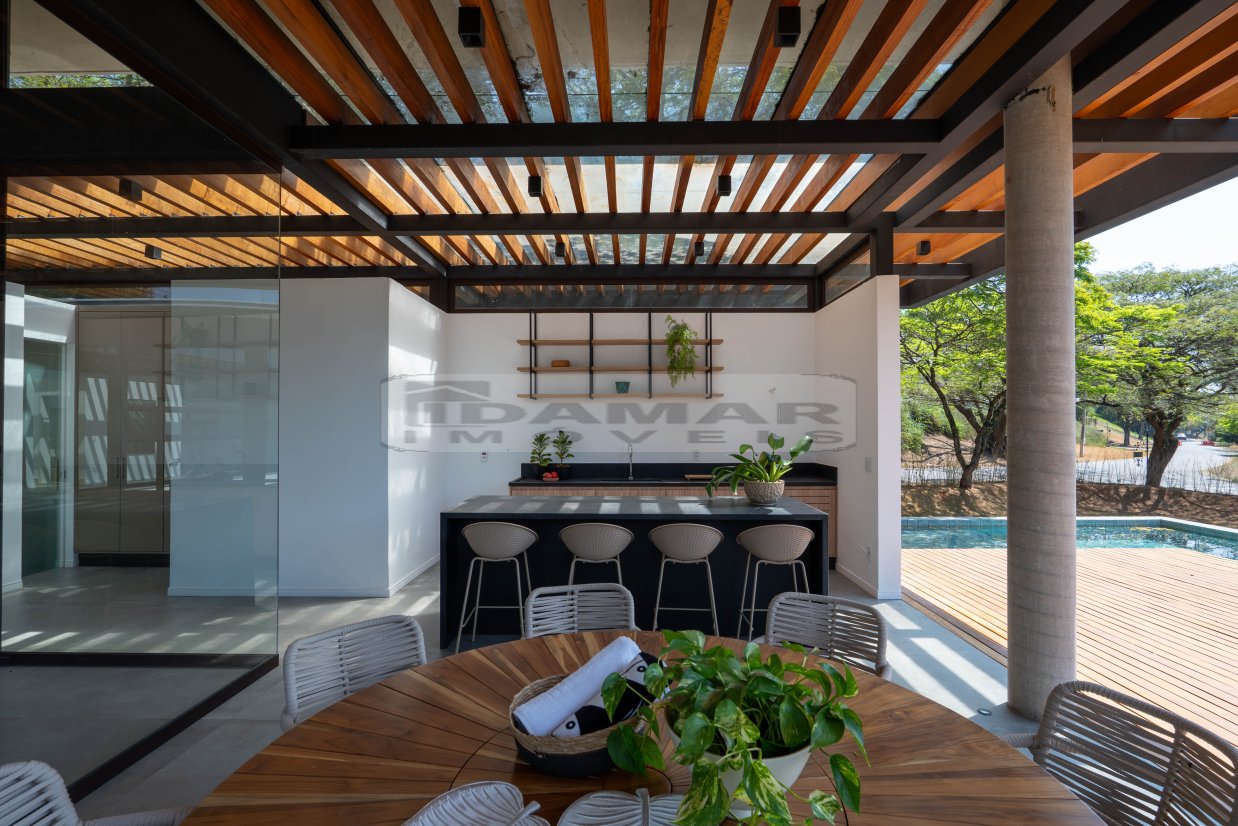 Espaço Gourmet com marcenaria, integrado com deck da piscina.
