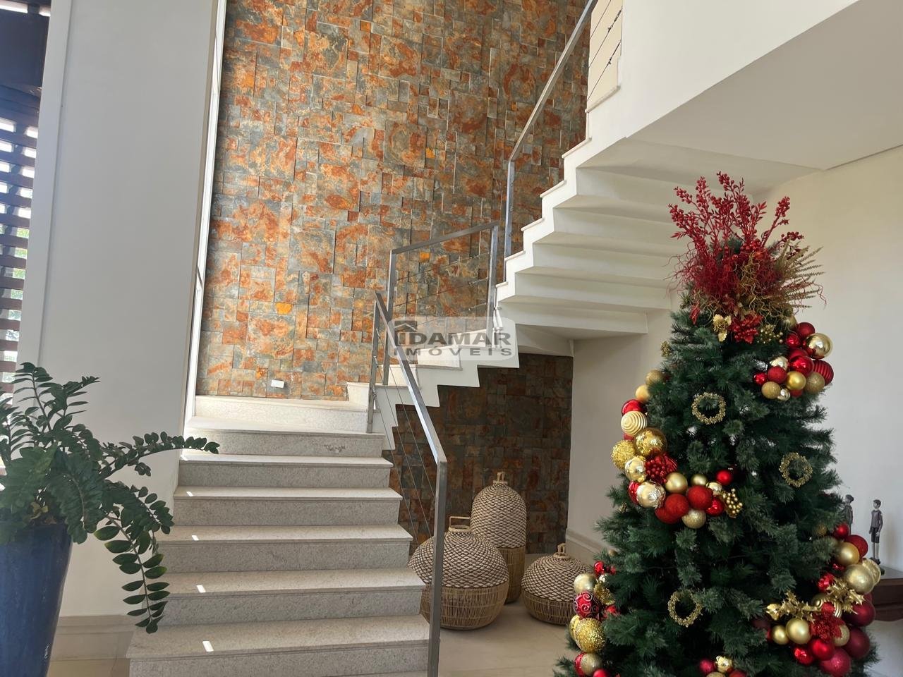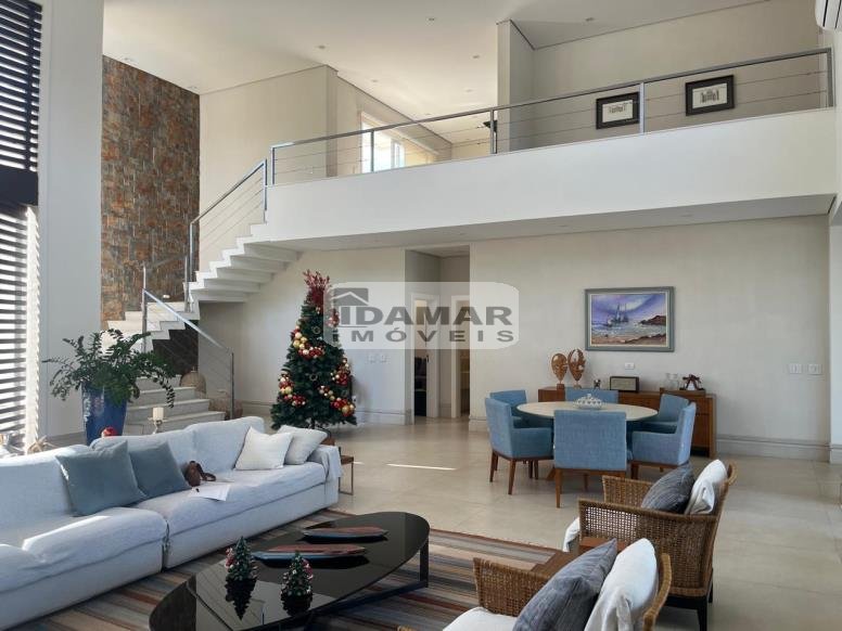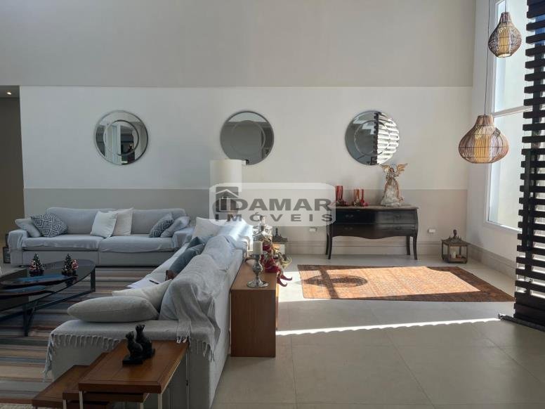 Pavimento Térreo: Garagem coberta para 3 carros. Ampla sala de estar conjugada com jantar e varanda, com pé direito duplo. Home Theater. 3 Suítes com Closet. Lavabo. Área serviço. Ampla cozinha com despensa, integrada com espaço gourmet. Espaço gourmet amplo e super equipado. Sala de musica. Vestiário. Quarto funcionária. Banheiro serviço. Depósito.