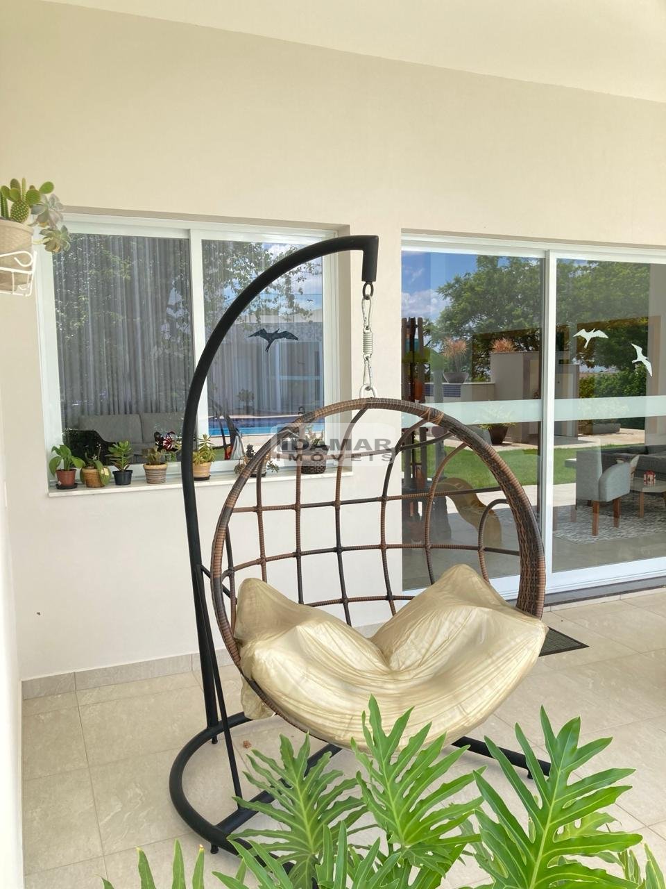 A residência possui cisterna subterrânea que capta água de chuva e energia solar na residência e piscina.