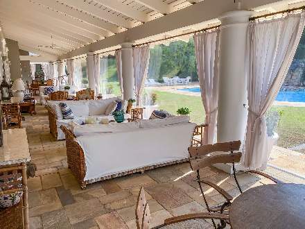 5 suítes, 10 banheiros, 6 salas e garagem para até 8 carros