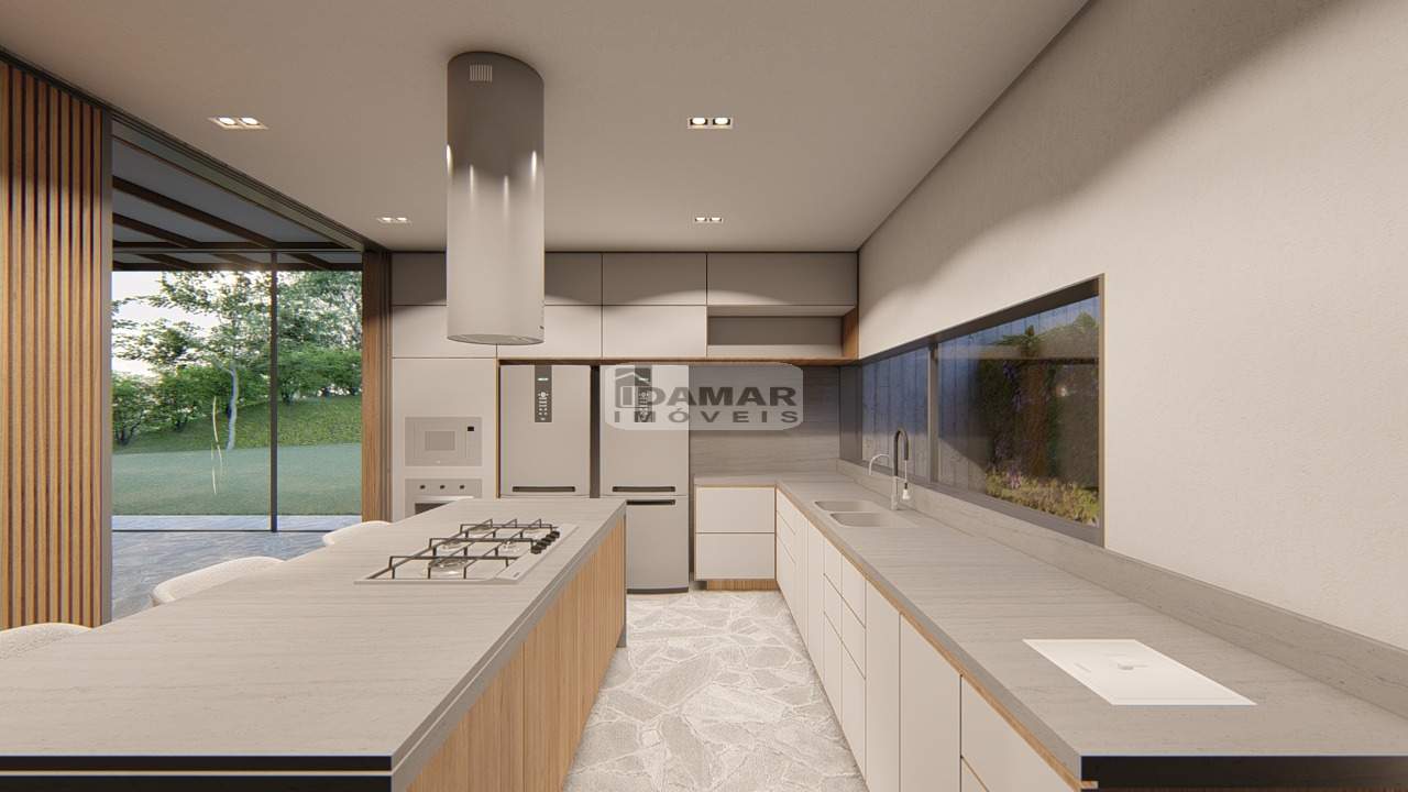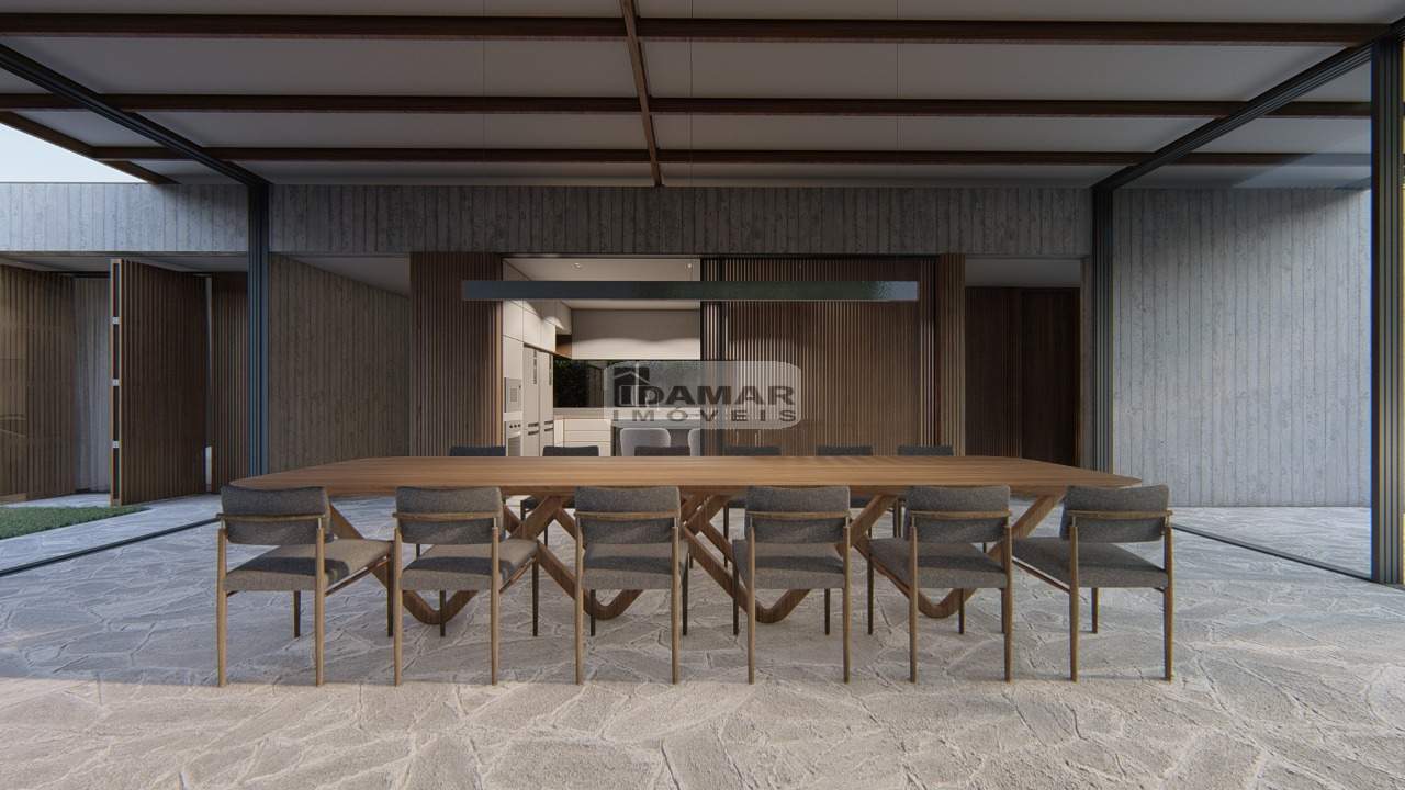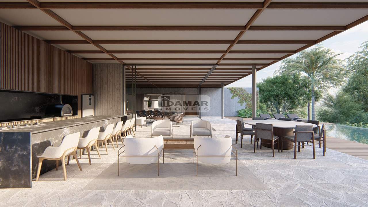 5 suítes, escritório, sala de TV, sala integrada à área gourmet, dependência para empregada, energia fotovoltaica, irrigação automática, aquecimento na piscina, poço artesiano, projeto de paisagismo