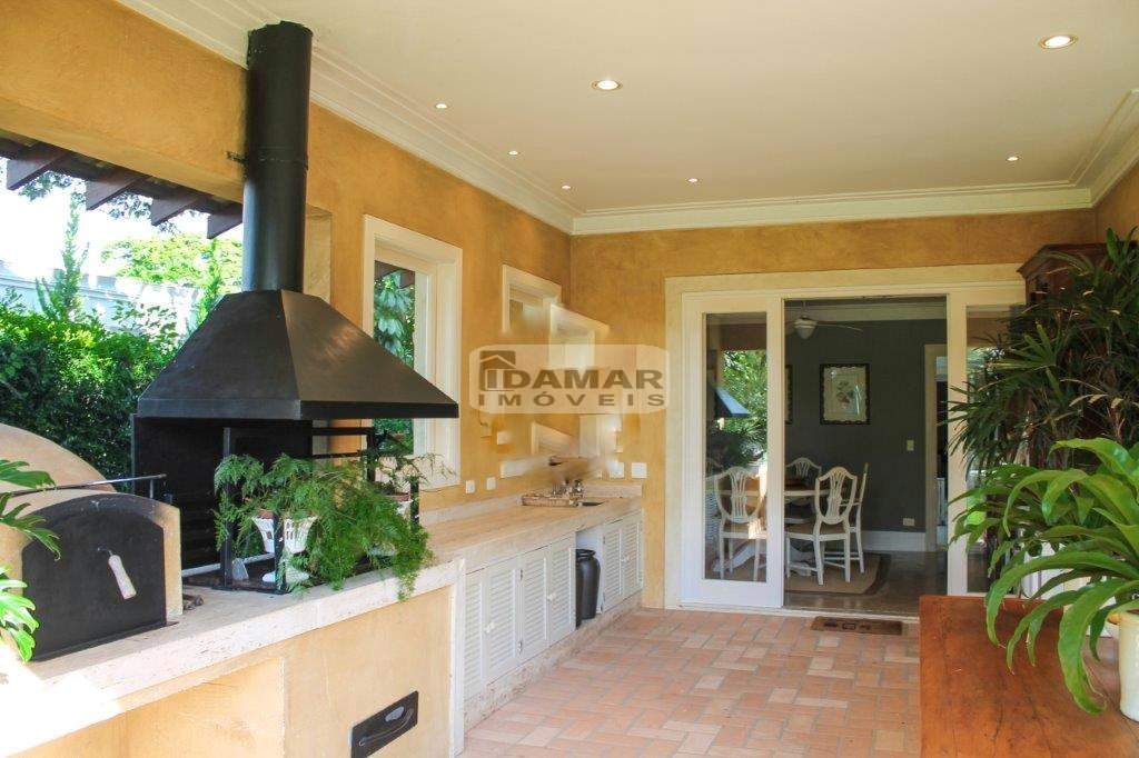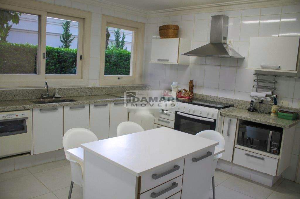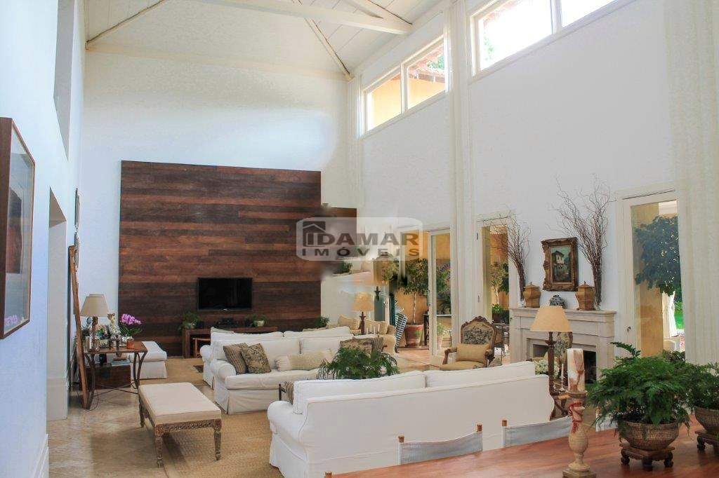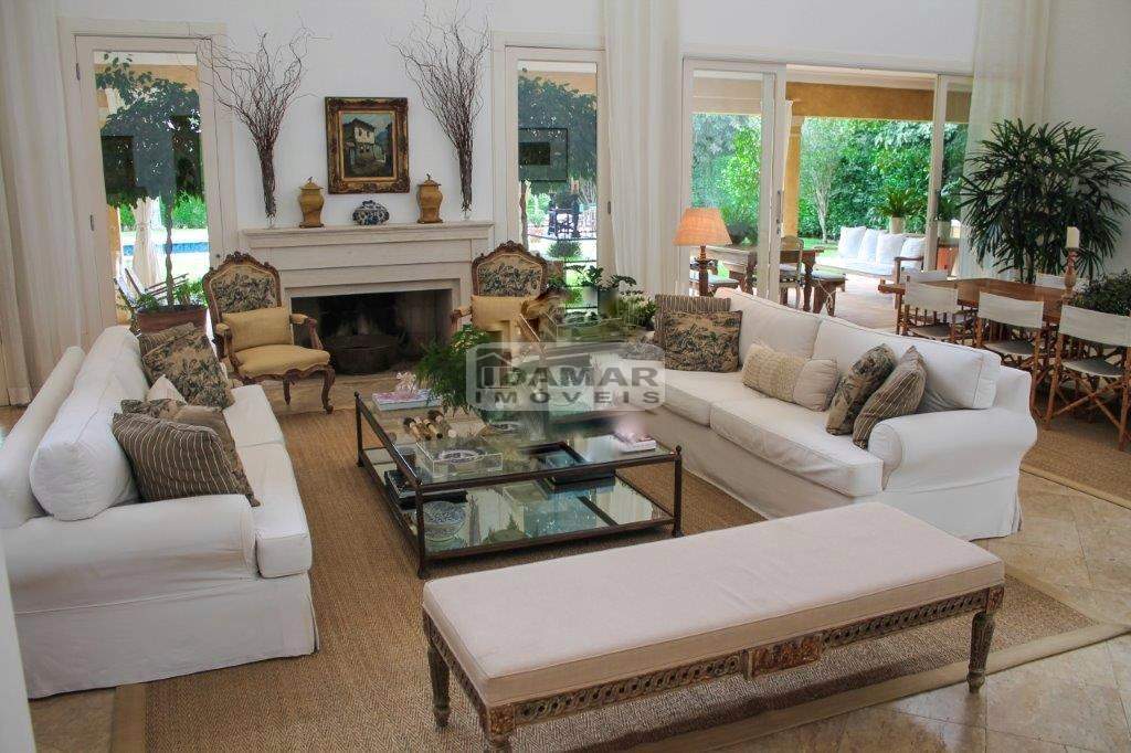 Piso térreo com 3 suítes, salas integradas, lareira, sala de jantar privativa, lavabo, cozinha com ilha, despensa e garagem para até 8 carros