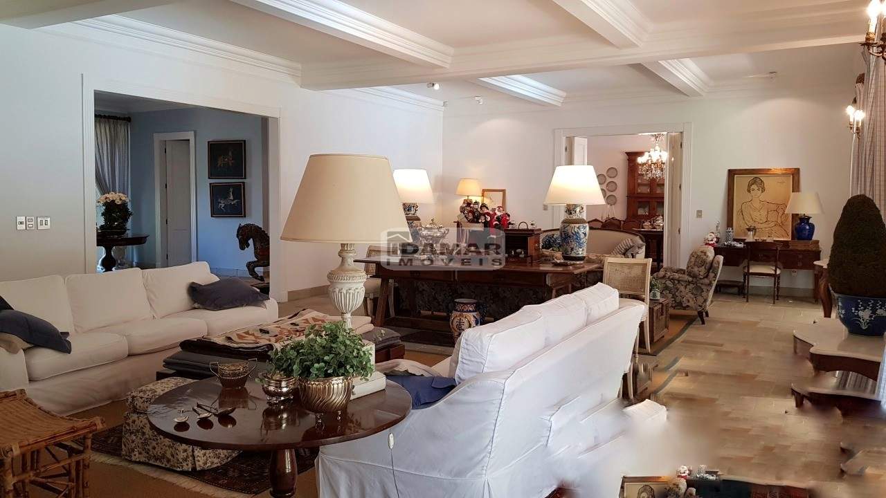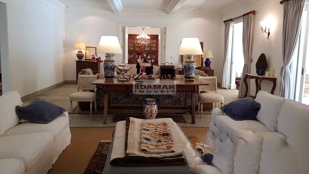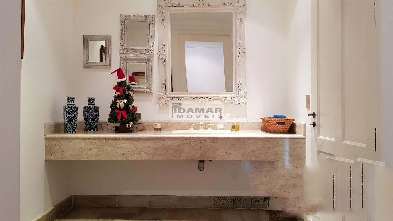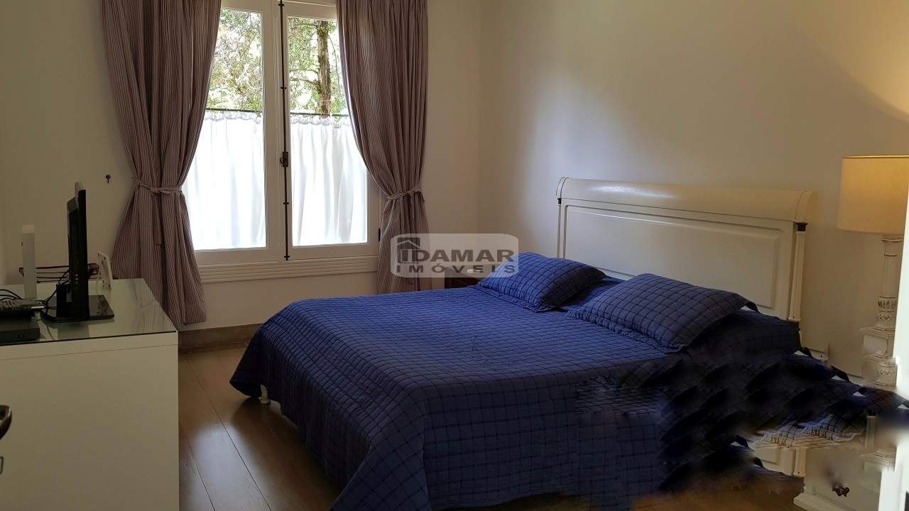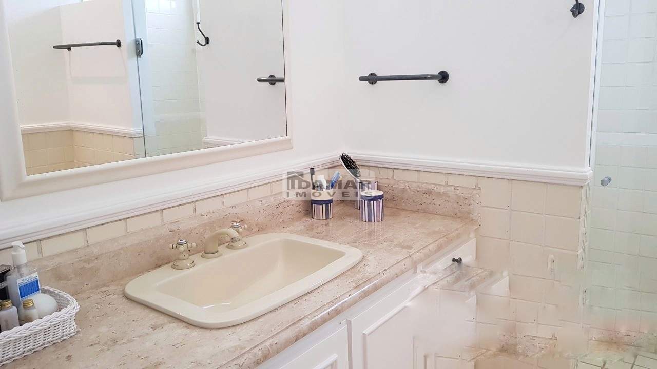 Casa térrea, com 5 suítes, 6 banheiros e 2 vagas de garagem. Excelente localização e ares de uma fazenda requintada. Bem distribuída em seus 2 lotes. Com poço artesiano e integração com o jardim clássico. Piscina posicionada no centro dos lotes. Em uma rua de pouco movimento no meio do condomínio. Possui casa de caseiro com 2 quartos, sala, cozinha e banheiro.