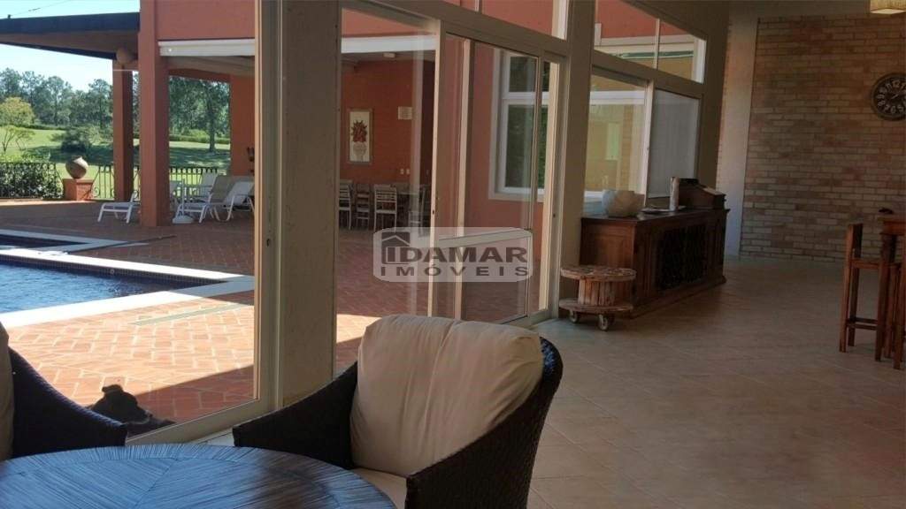 Localização privilegiada, visual deslumbrante com piscina entre mata, areia, grama, flores e charmoso piso em tijolo. A casa possui pé direito alto, com 5 suítes equipadas com ar split e portas balcão para a piscina e jardim. Home theater com telão e ar condicionado e escritório. Churrasqueira, lareira, piscina aquecida com vista para o golfe, salão de festas, sauna seca, banheiro para a piscina e para o salão de festas, quarto e banheiro de empregada. Churrasqueira com mesa ampla e caixas de som. Ar condicionado nas 5 suítes. No pavimento inferior, sauna e salão de festas junto ao jardim de frutíferas.