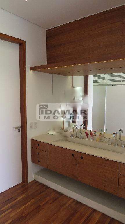 4 suítes, escritório privativo, salas integradas com pé direito duplo, cozinha com copa, despensa, jardim de inverno, lavabo, área de serviço com acesso independente e 2 quartos para funcionário.