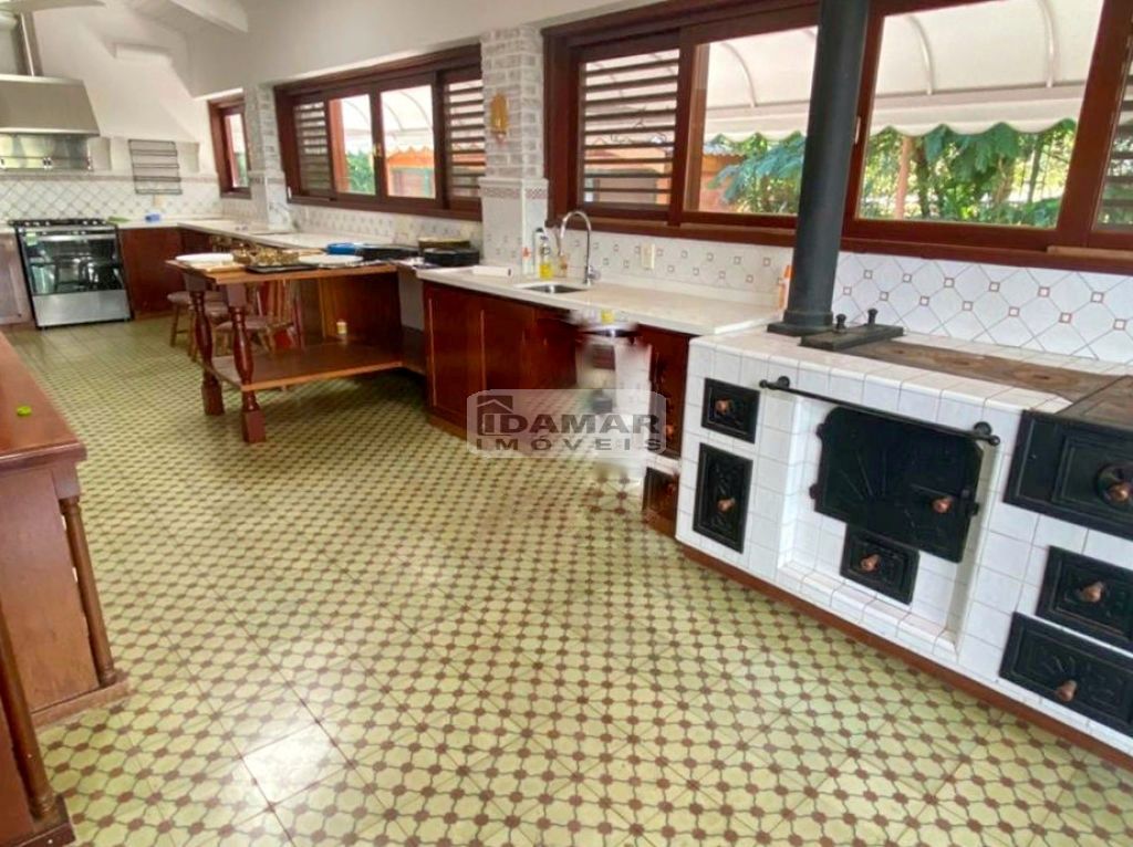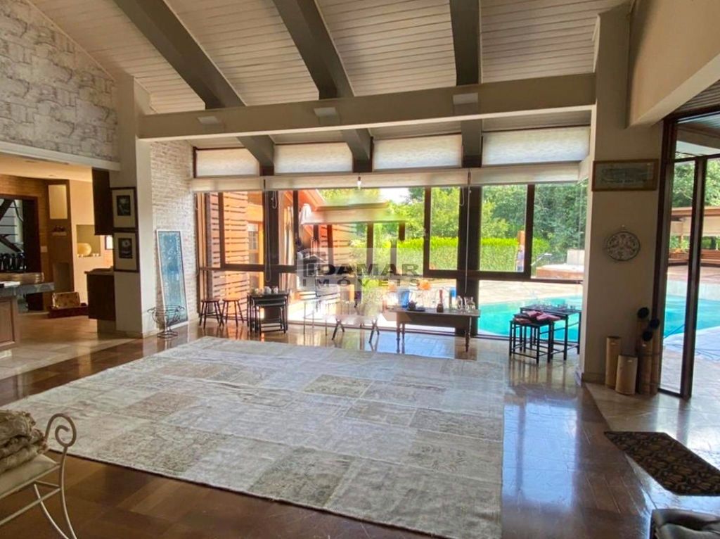 8 suítes, suíte de funcionário, 4 lavabos, sala de jogos, sala de estar, sala de jantar, varandas, churrasqueira, forno a lenha, sala de café da manhã, Home Theater com janelas acústicas, adega, cozinha gourmet, cozinha de serviço, horta, brinquedoteca, parquinho infantil, piscina aquecida e ionizada, jacuzzi, biblioteca com mezanino, lavanderia com banheiro de serviço, varanda ?gazebo? na biblioteca, suíte master com 2 closets e 2 banheiros, jardim planejado, vagas para 8 carros, canil com dois ambientes, aquecimento central, caixa com reserva de 40 mil litros de água, poço para rega do jardim, ar condicionado em todos ambientes internos.