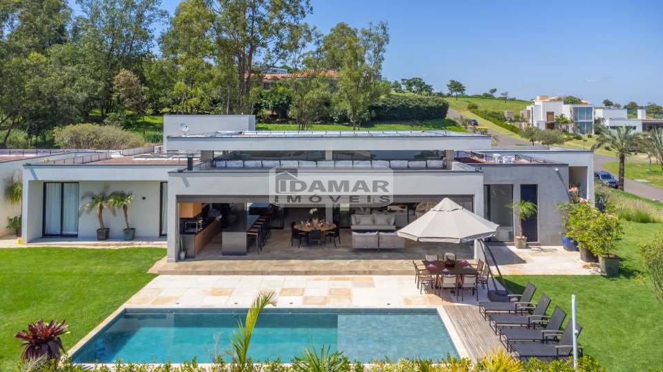 5 suítes (sendo uma master), Ar condicionado em todas as suítes, Sala de estar, Sala de jantar, Home theater, Lavabo, Cozinha com ilha, Despensa, Área de serviço & Lavanderia, Suíte para colaborador, Sauna, Piscina, Espaço gourmet integrado