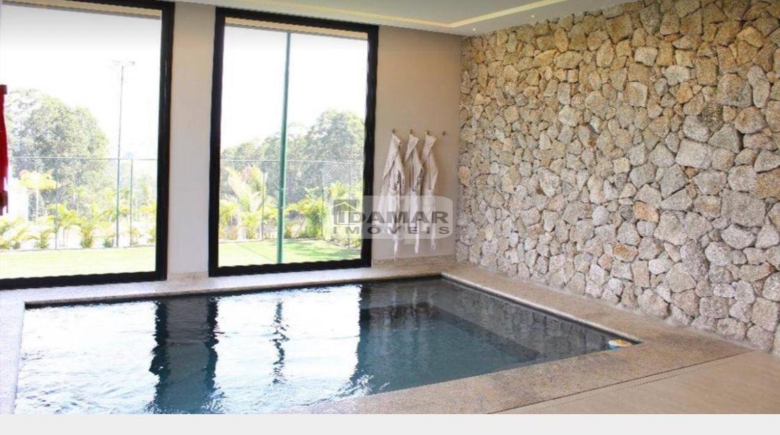6 suítes, sendo 2 no Térreo, espaço gourmet completo, sauna com spa aquecido, piscina, quadra de tênis e futebol, brinquedoteca e dependência de empregada.