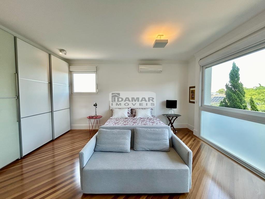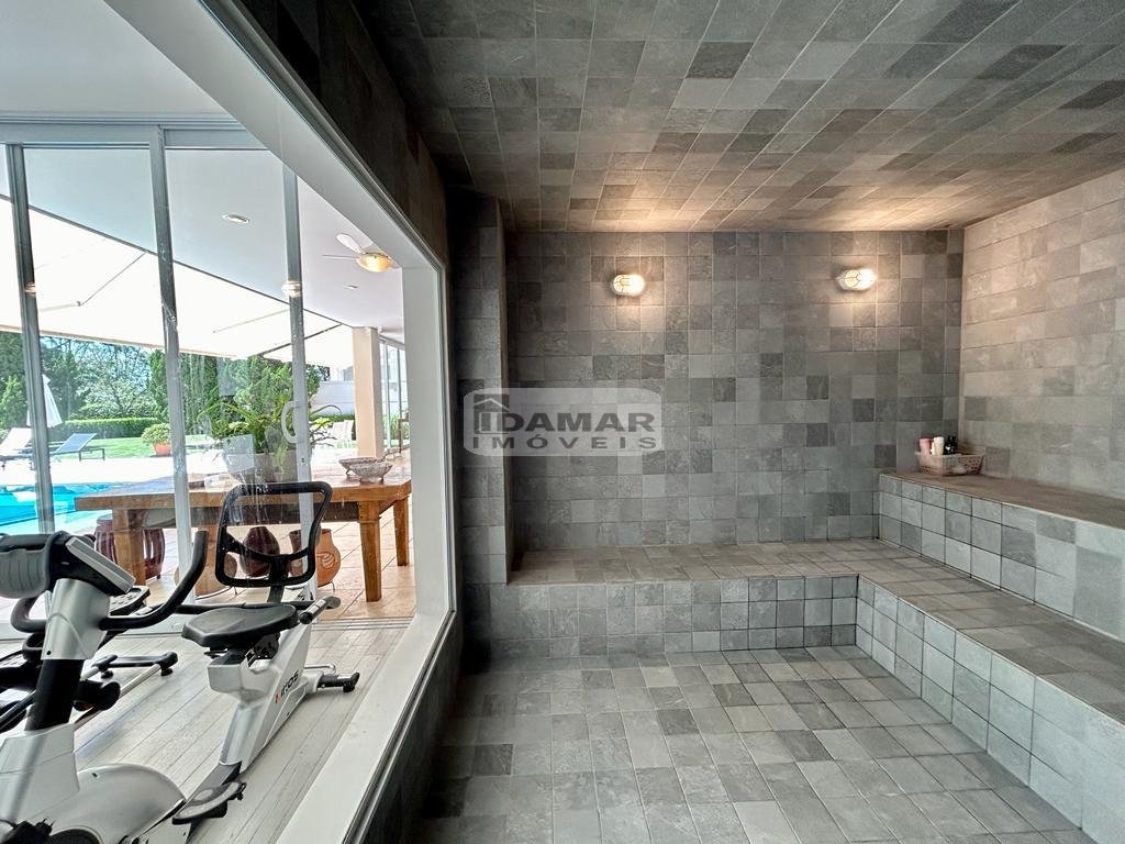 Suíte master com 66 m² e closet masculino e feminino separados; Demais 3 suítes piso superior, respectivamente, com 44, 28 e 50 m²; 1 Suíte no térreo (escritório) com 27 m². Studio de 24 m² (brinquedoteca ou salão de jogos ou pilates). Hometheather de 27 m² com equipamentos; Lavanderia de 16 m²; Área gourmet de 100 m² com parrilha, cervejeira, forno de pizza, máquina de gelo, ilha, bancada de apoio. Essa área possui som ambiente (Receiver Denon). Sauna úmida de 8,7 m². Varanda de 60 m² no piso superior