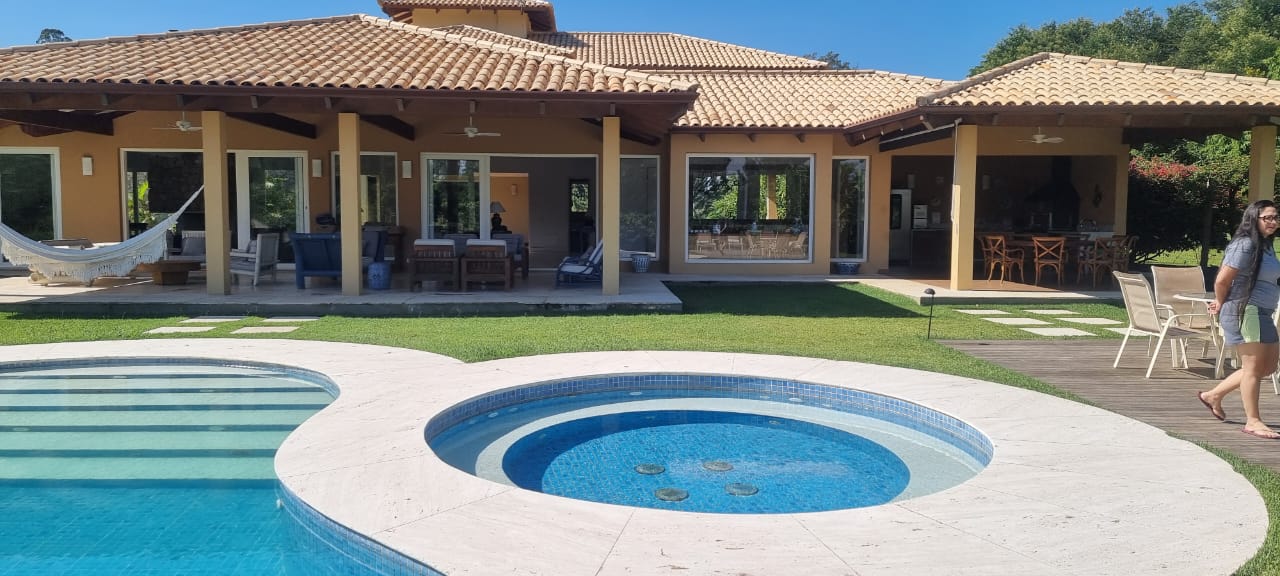 Casa extremamente agradável, 5 suítes, piscina, jacuzzi, sauna. Local único no condomínio, 2 terrenos somando 4.500m².