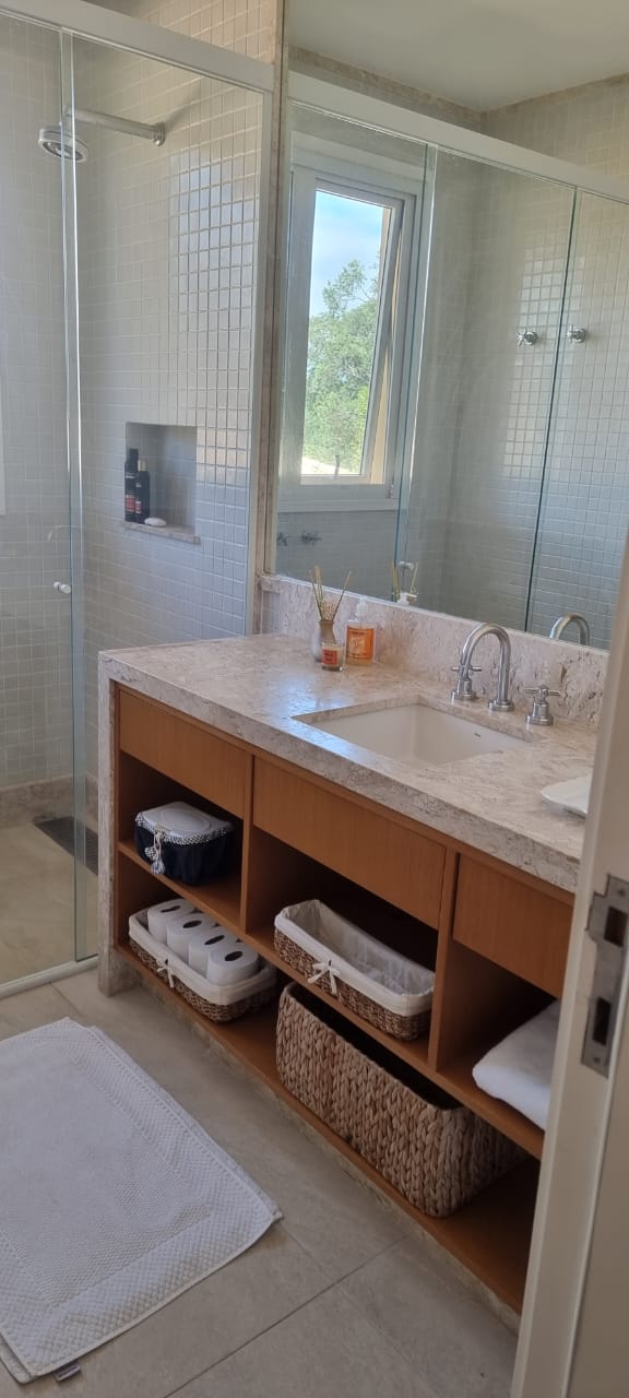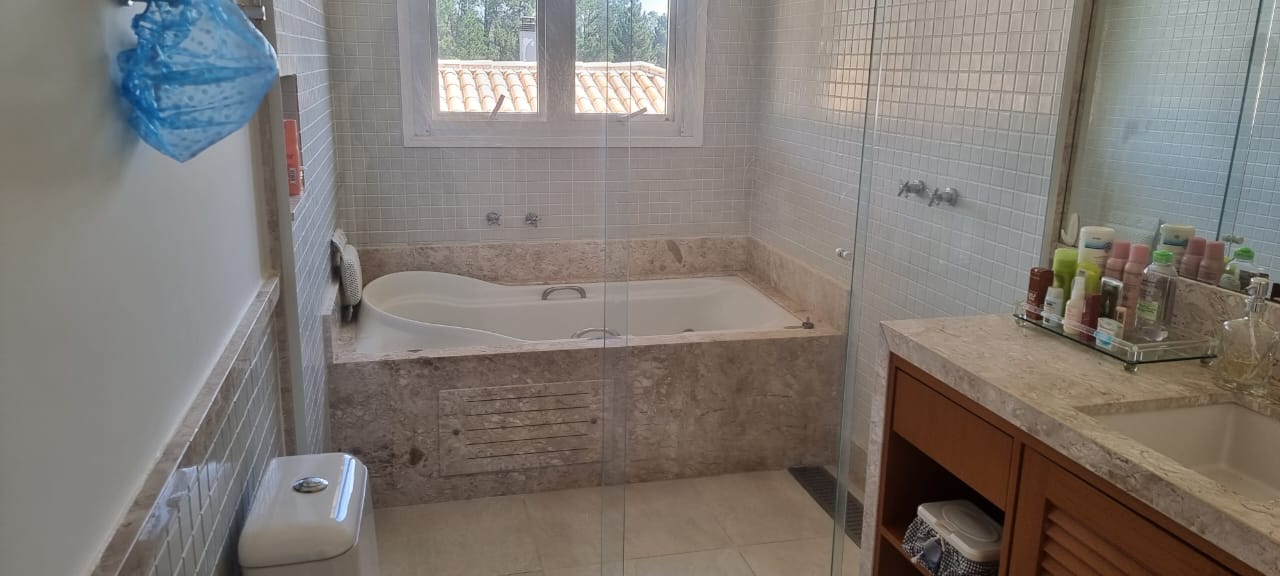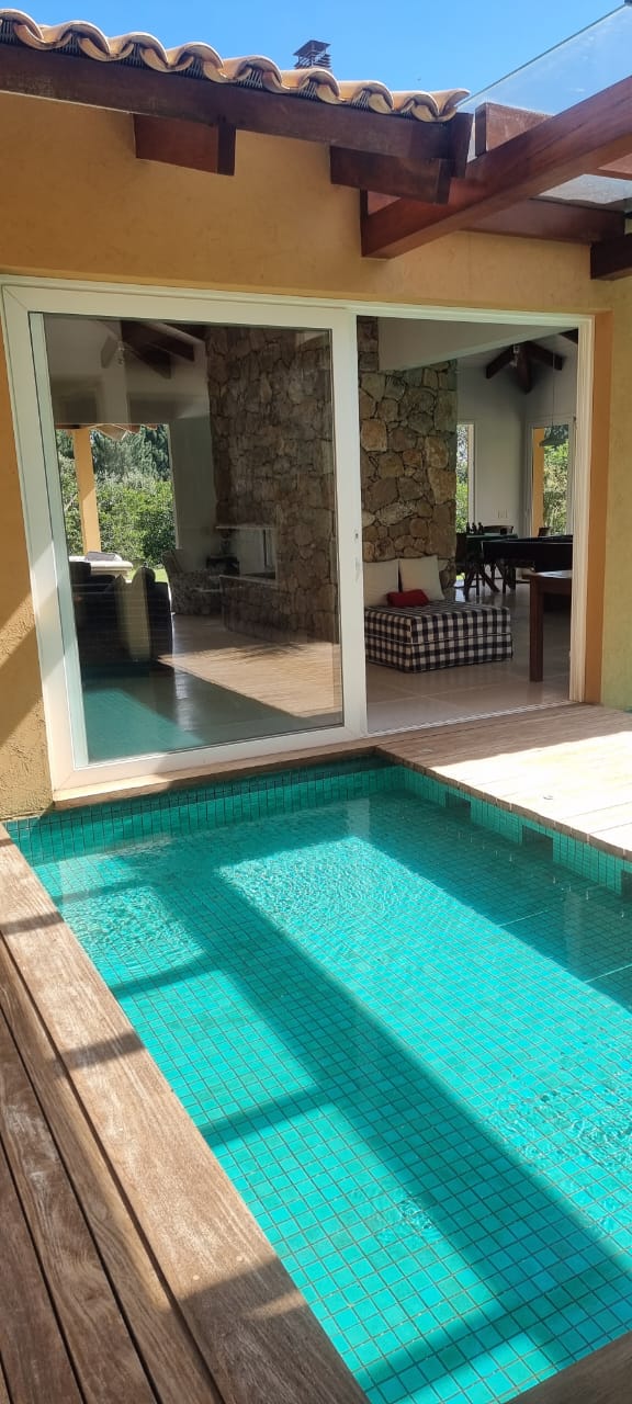 Com aproximadamente 1.000m² de área construída, a casa, com total privacidade e vista eterna para uma exuberante área verde, possui também: poço artesiano, irrigação automática, sauna úmida e piscina com spa aquecido.