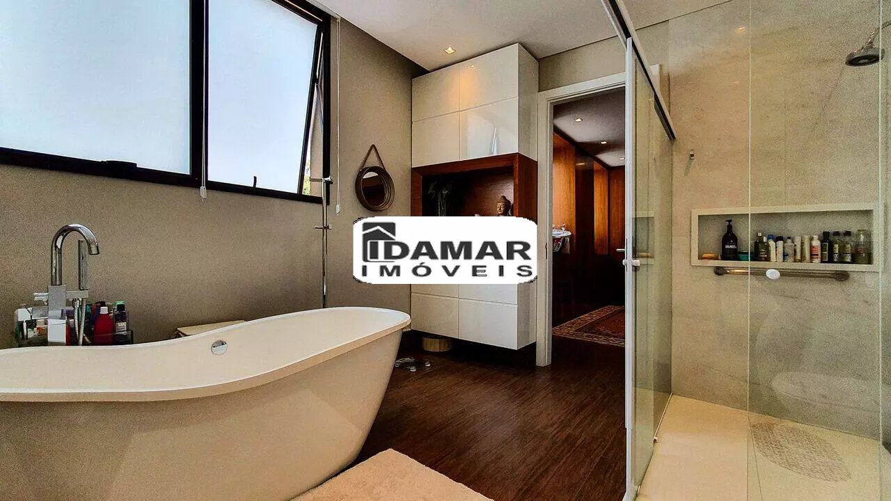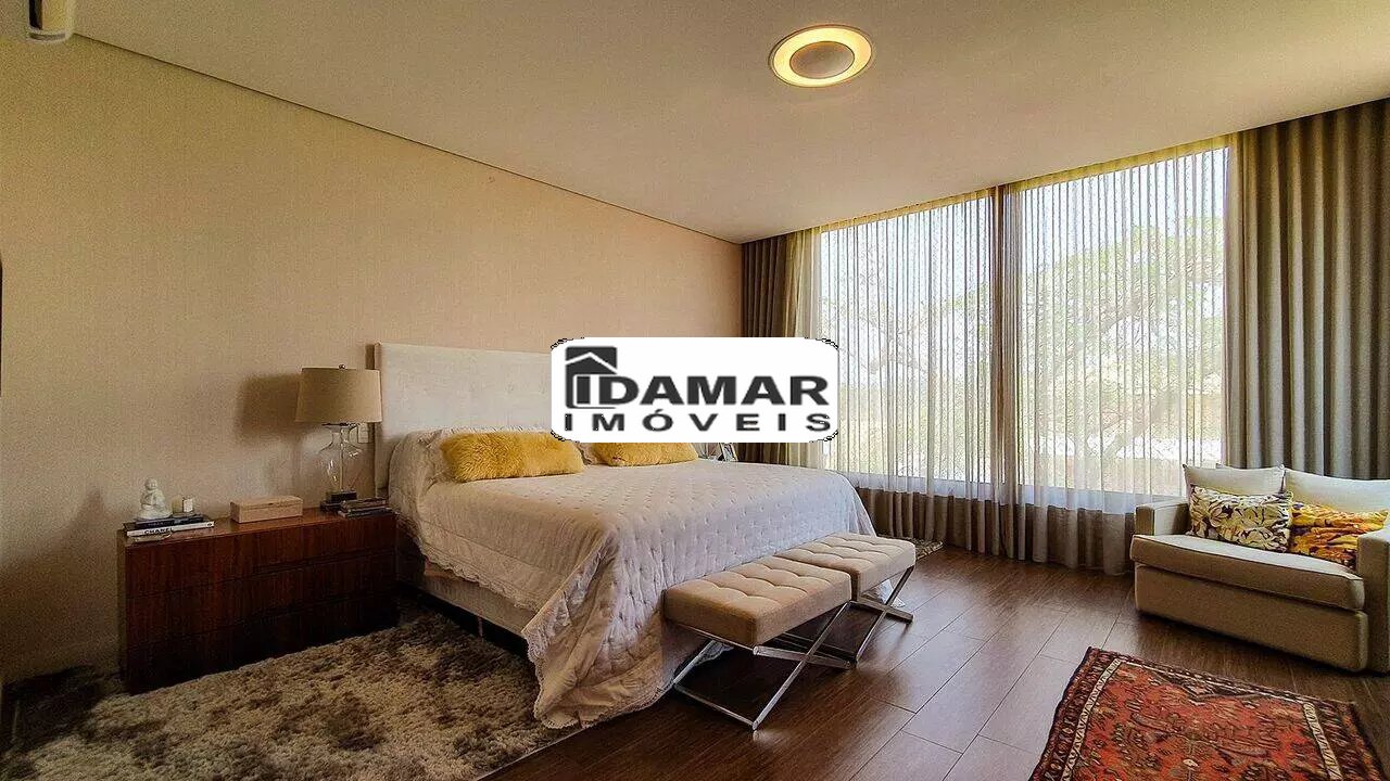 São 1300m² de área construída em um terreno com fundo para a área verde, proporcionando aos moradores um contato direto com a natureza e privacidade total para relaxar e aproveitar o lar! Possui uma ampla sala de estar com pé direito alto, enormes janelas e tijolinhos à vista que ditam o aconchego. Há ainda sala jantar, lounge com barzinho integrado ao espaço gourmet, cozinha, sala de TV e duas suítes. No segundo pavimento temos mais 4 suítes confortáveis, onde a máster oferece closet e banheira. Todos os quartos são privilegiados com uma vista única! Já a área externa possui um repertório completo de lazer e bem-estar com gourmet, sauna, banheira de hidromassagem, pequena horta e um ótima piscina aquecida (aquecimento solar) com cascata e deck em madeira. Além disso, toda extensão do imóvel conta com jardim gramado acompanhado pelo lindo paisagismo!