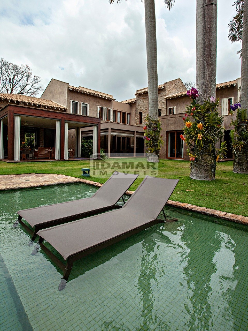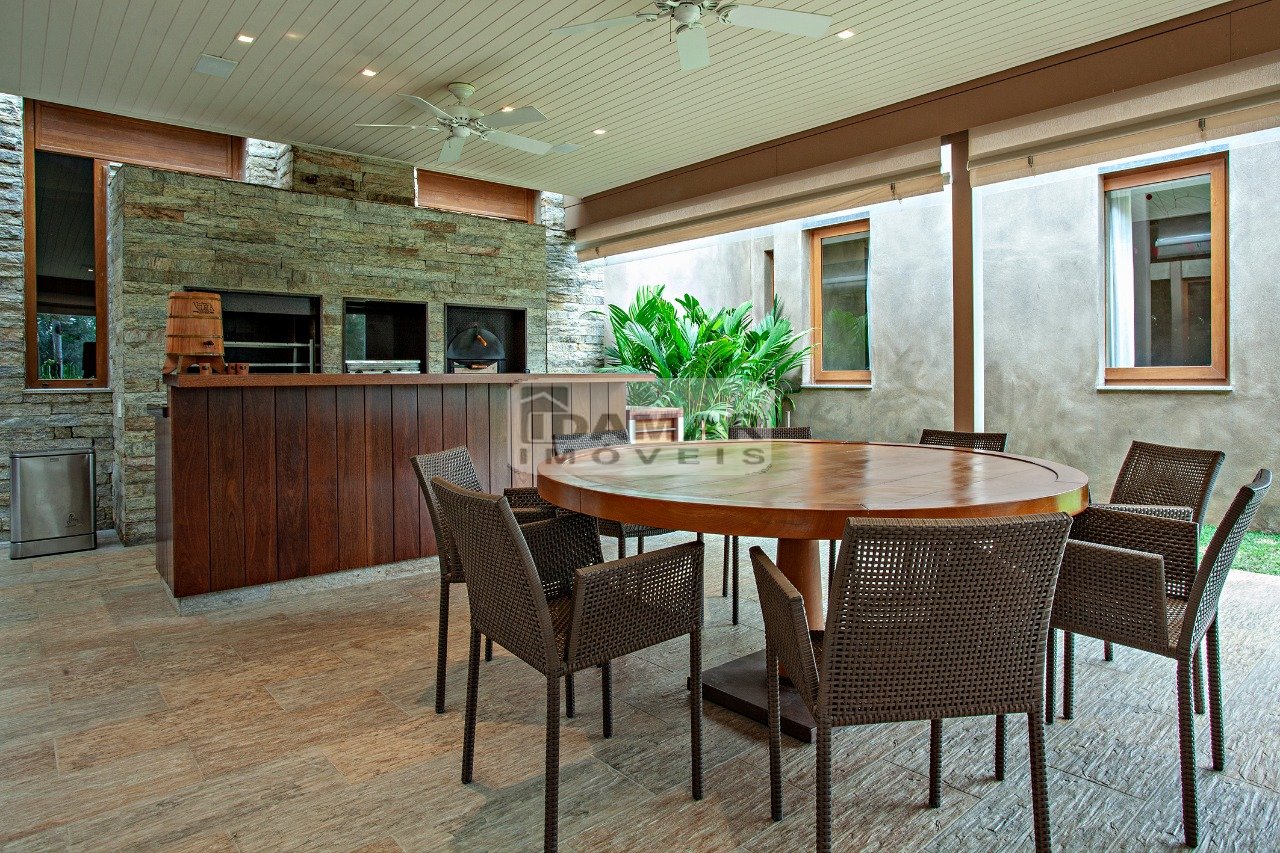 Home Theater no andar térreo e superior, cozinha gourmet e espaço gourmet completos além da cozinha do dia a dia, todas equipadas com armários Kitchens. Lavanderia, Dep. de empregada, Piscina com aquecimento solar e elétrico, imitando um lago com cascata.