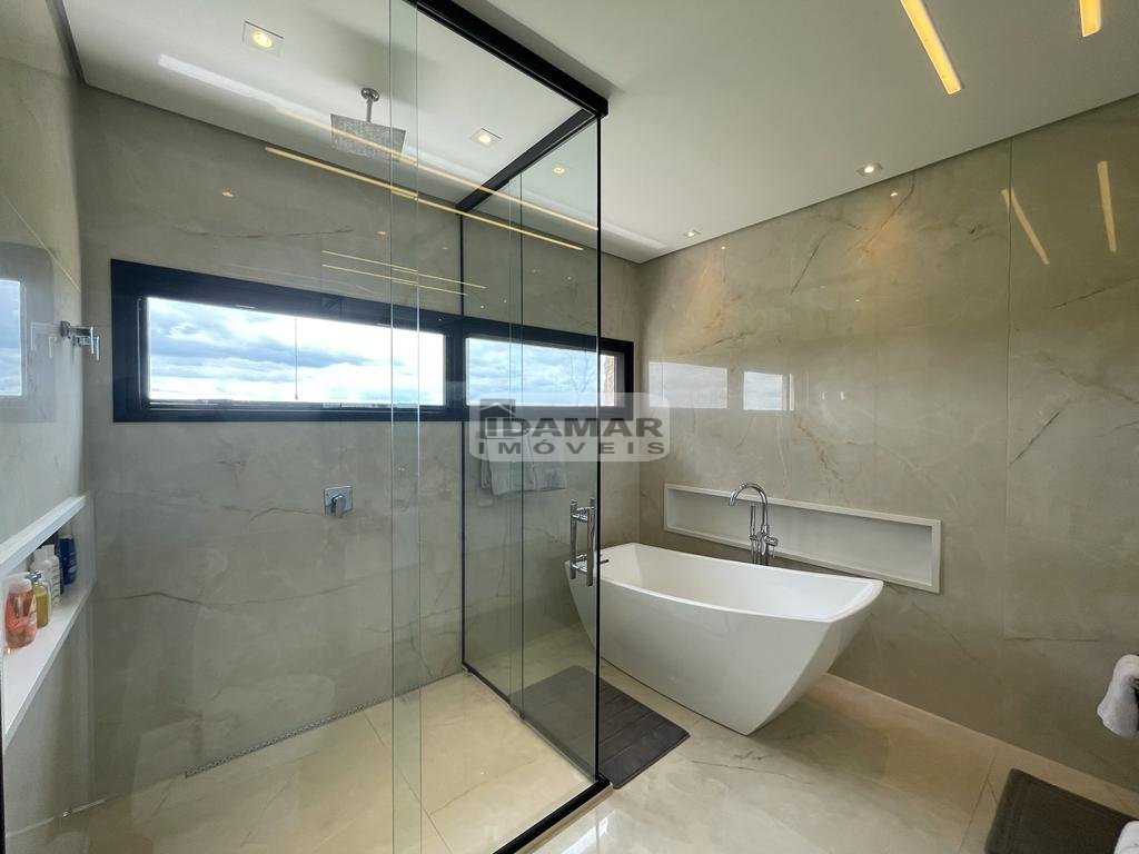 Com 2.955m² de área do terreno e 730m² de área construída, esta magnífica casa, térrea, com amplo jardim e muito lazer, no Condomínio Terras de São José II, em Itu.
