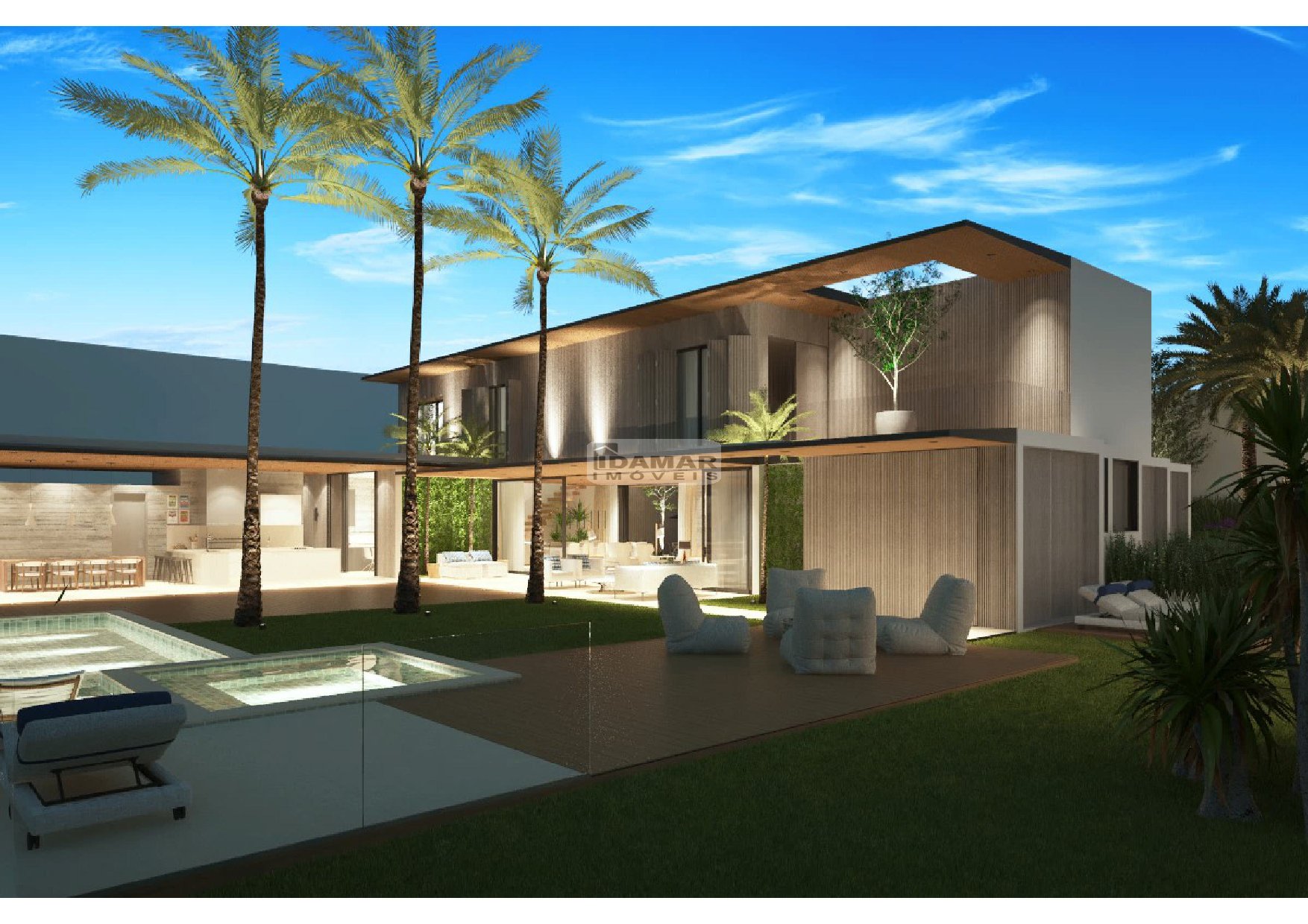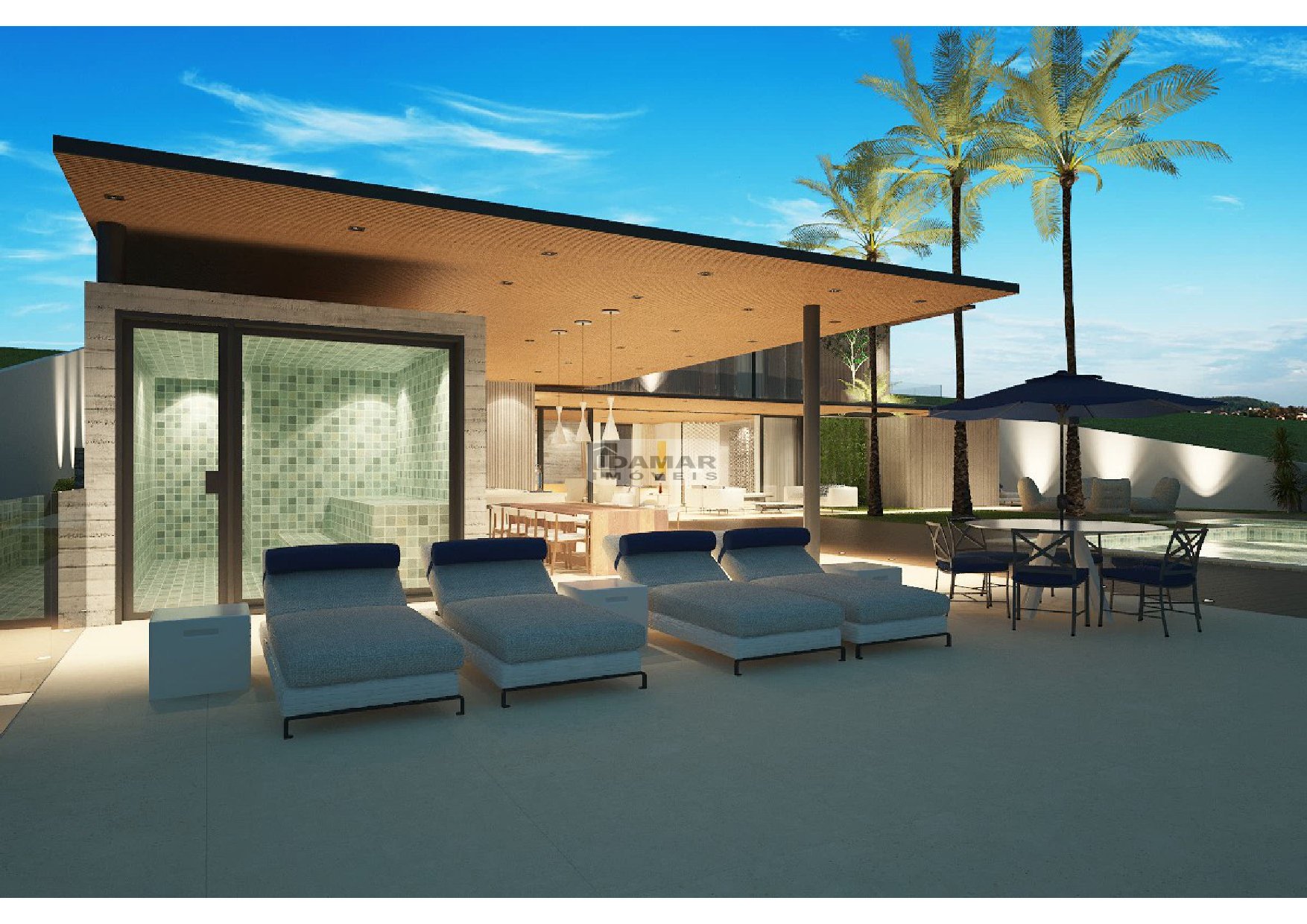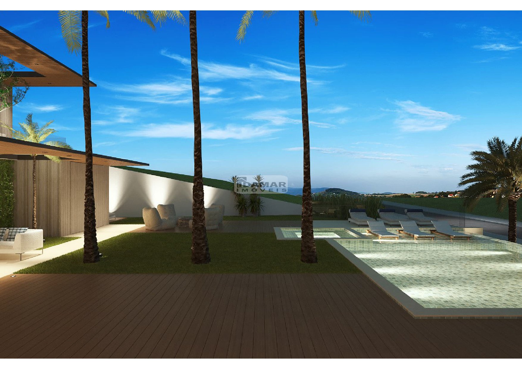 - Piscina 50m³ com borda infinita, iluminação, prainha e spa com bordas e deck em granito