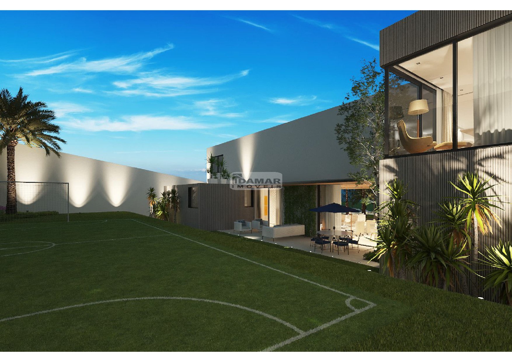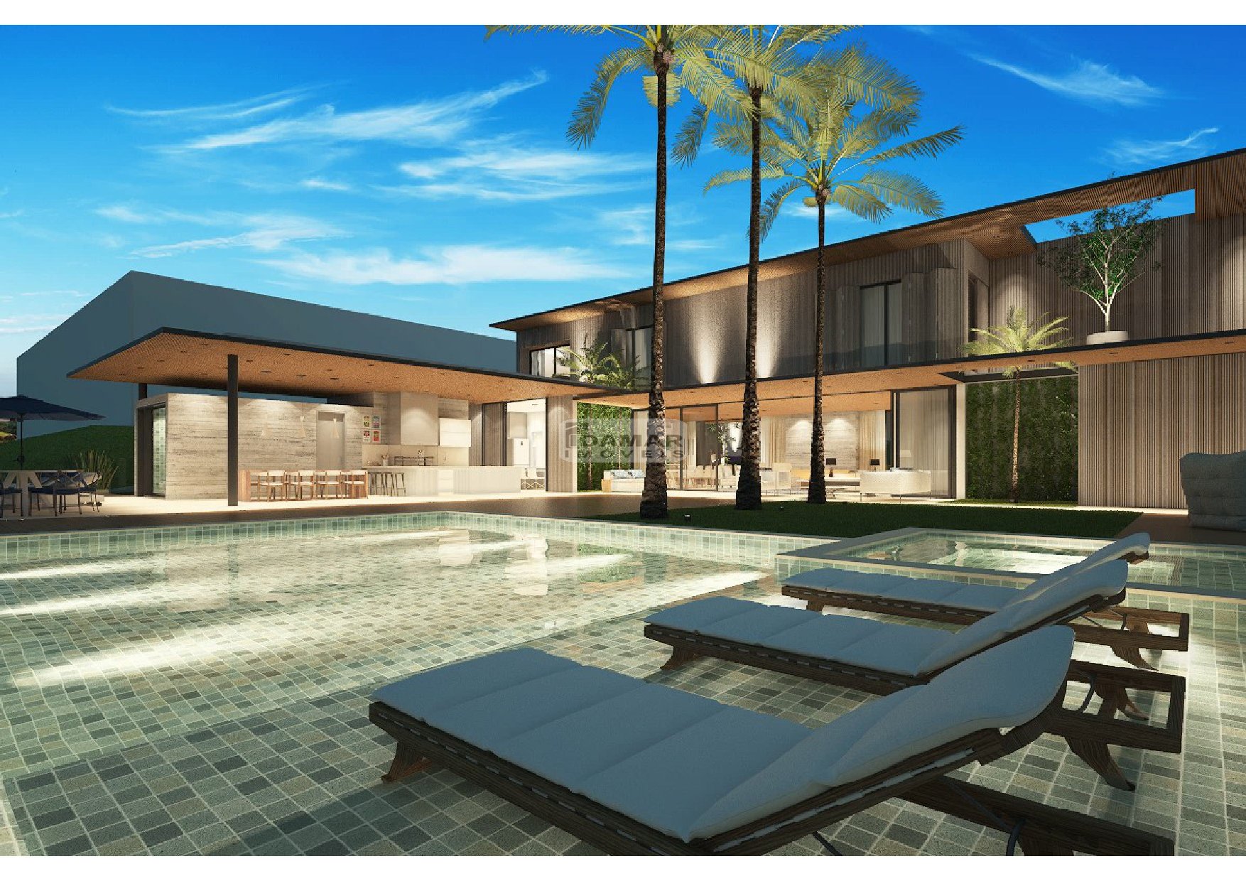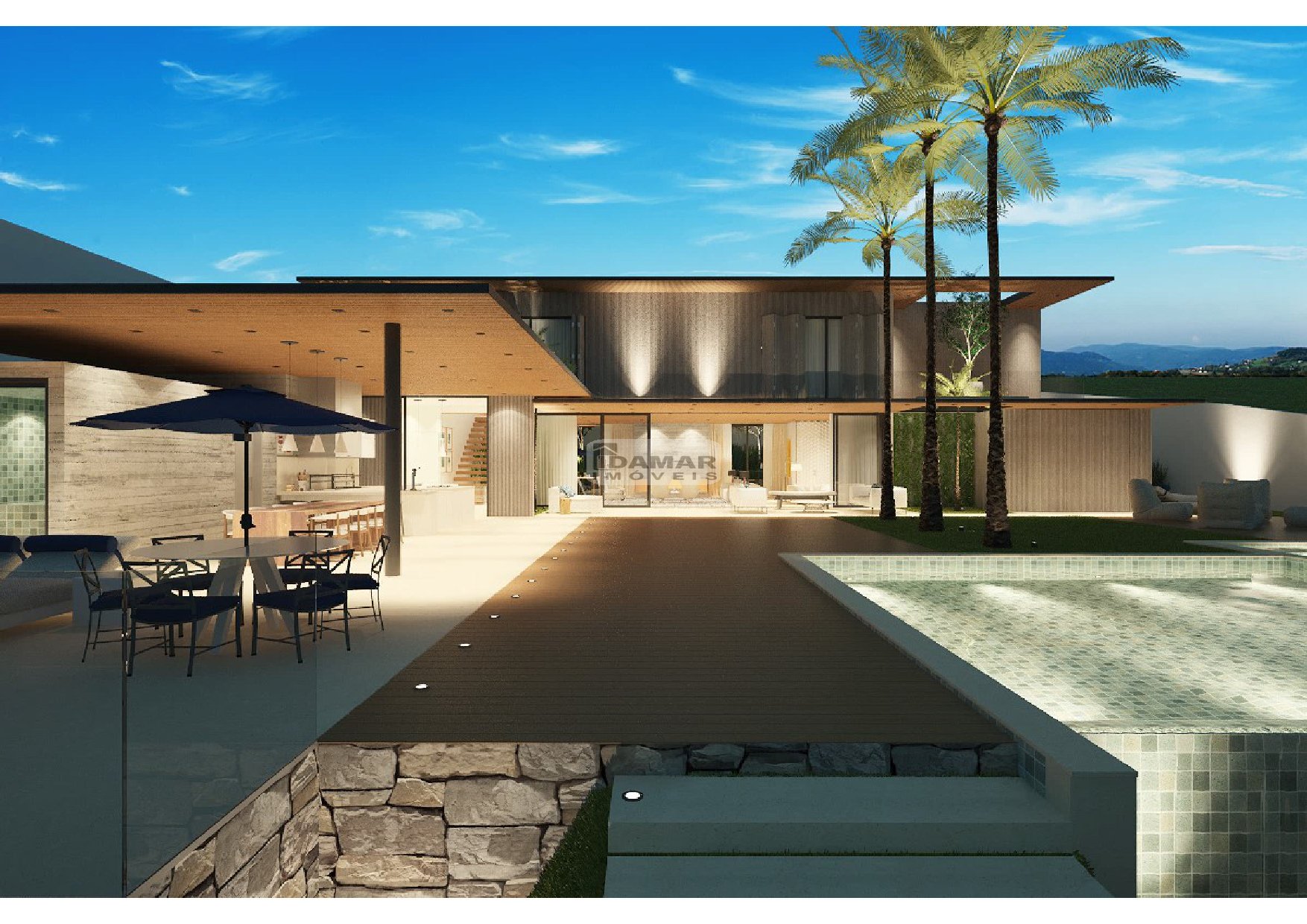 - Piscina 50m³ com borda infinita, iluminação, prainha e spa com bordas e deck em granito