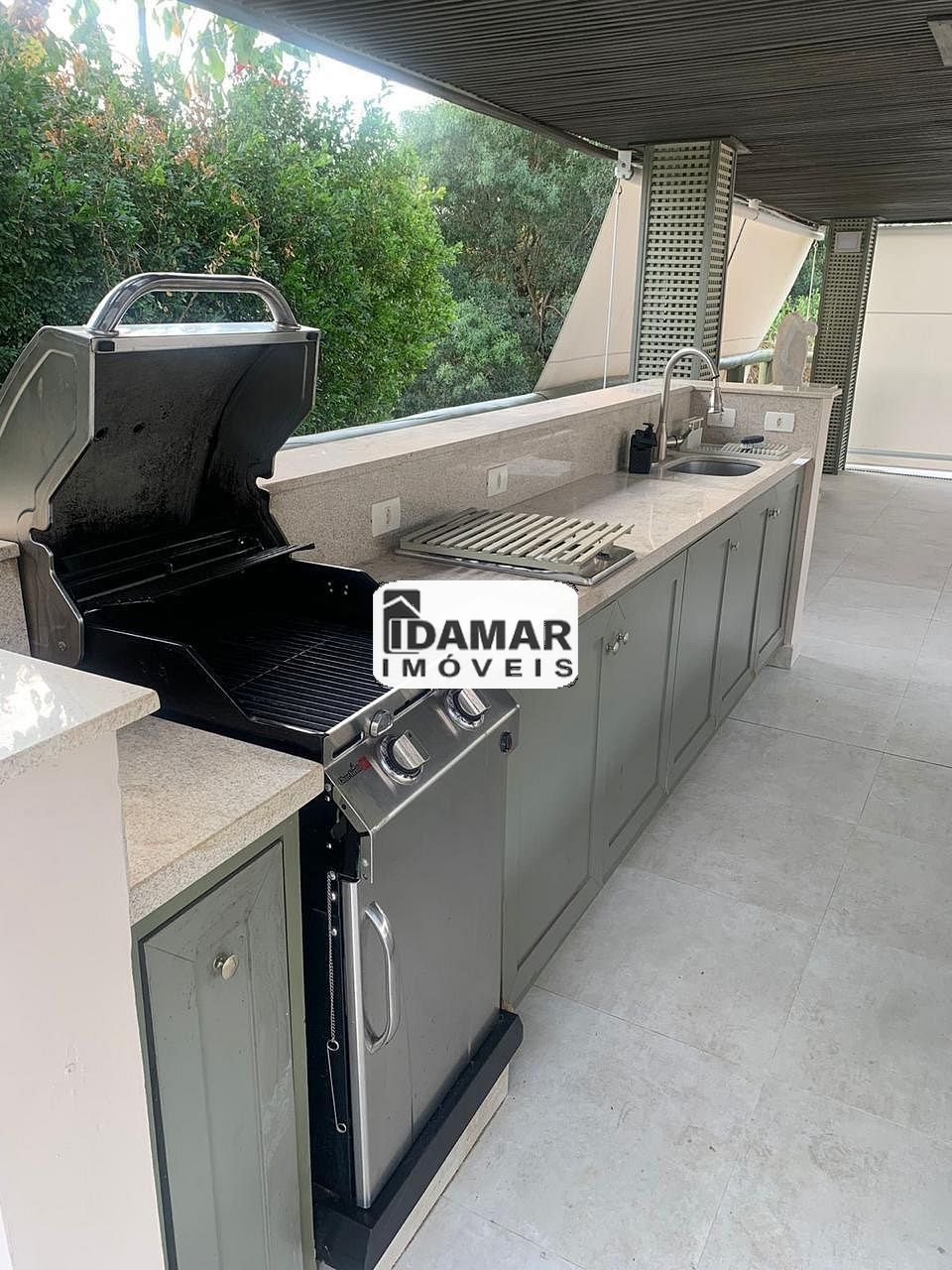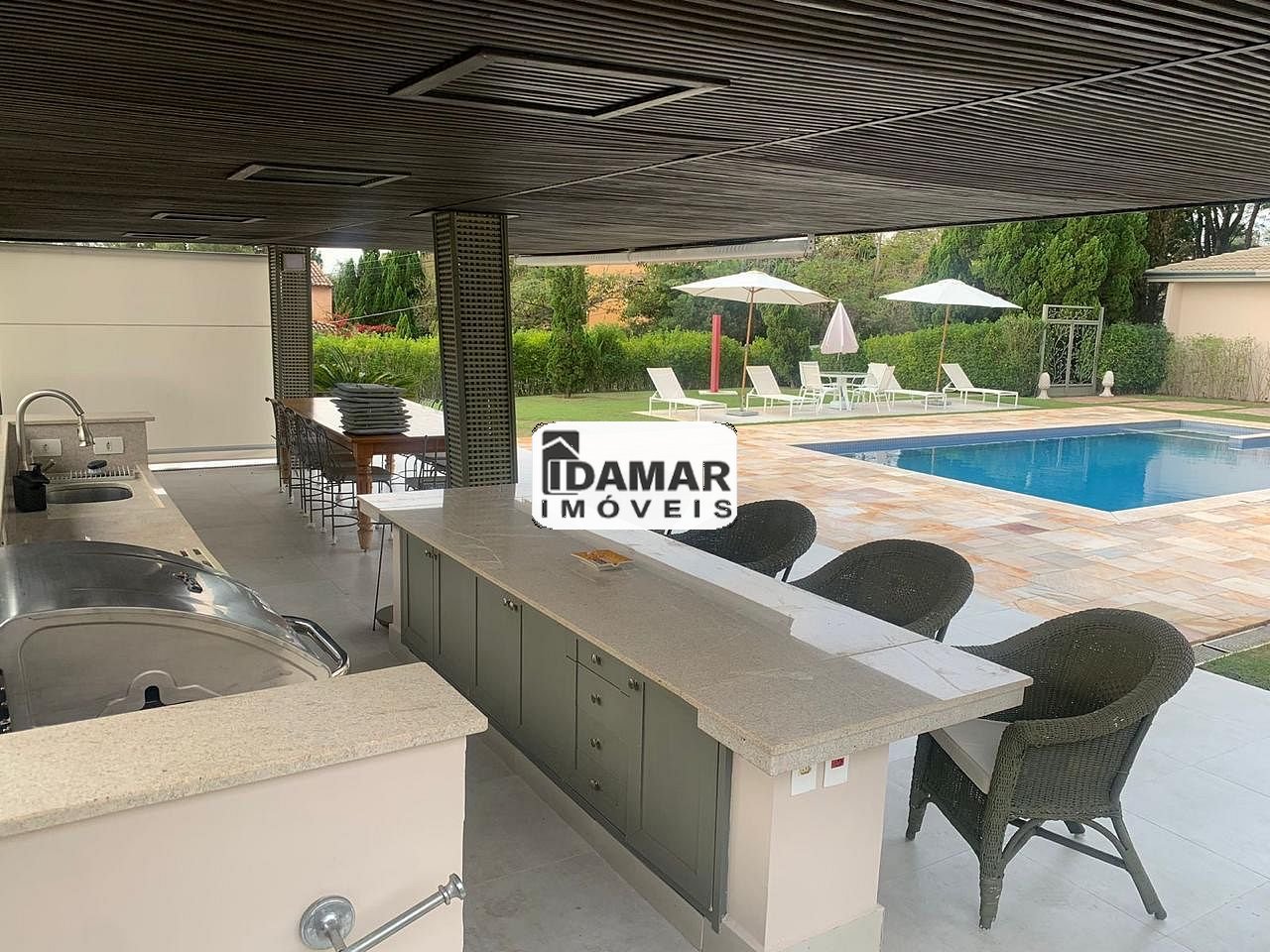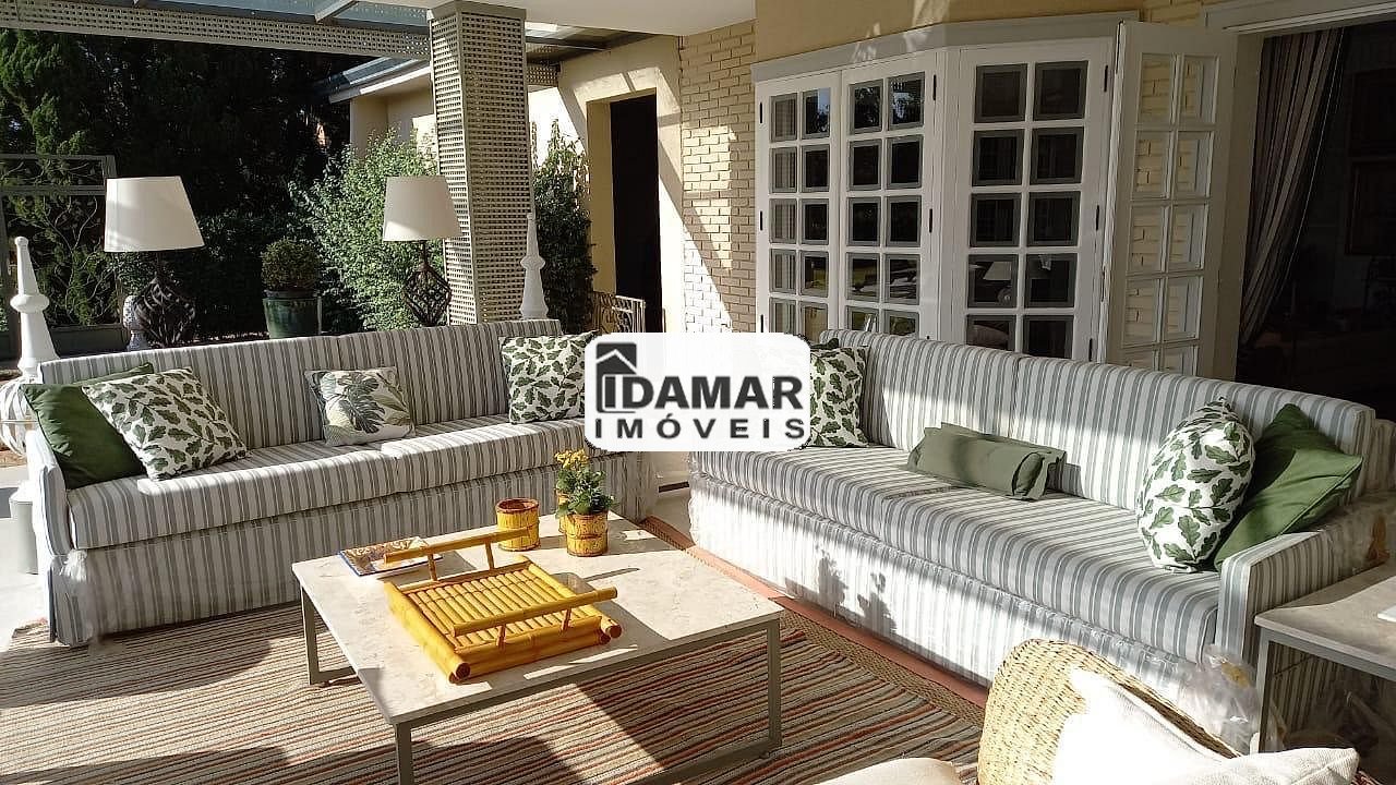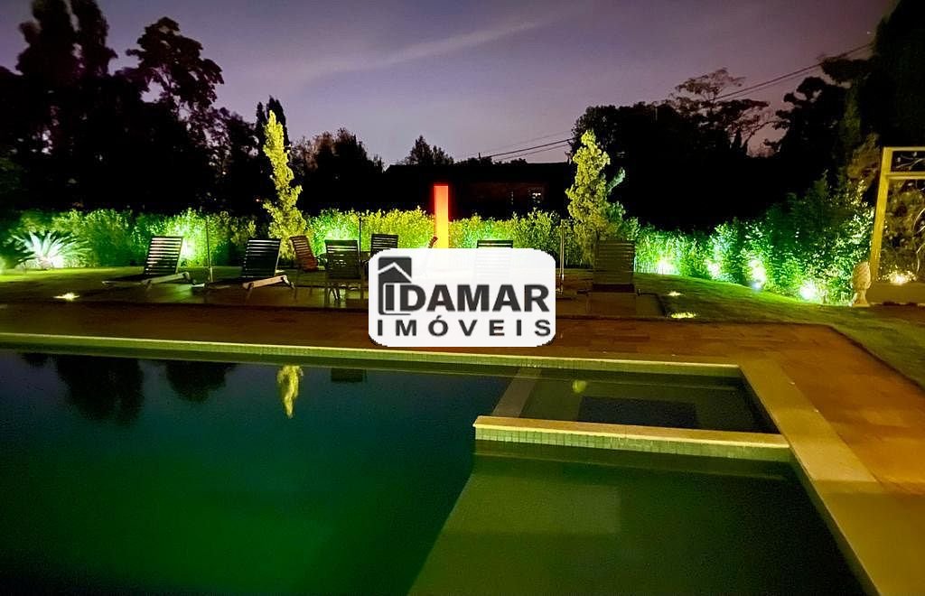 São 5 dormitórios sendo que todos são 5 suítes, salas amplas e iluminadas, varanda com vista para o quintal, espaço gourmet com churrasqueira, piscina que aproveita a luz solar durante todo o dia e quintal gramado.
