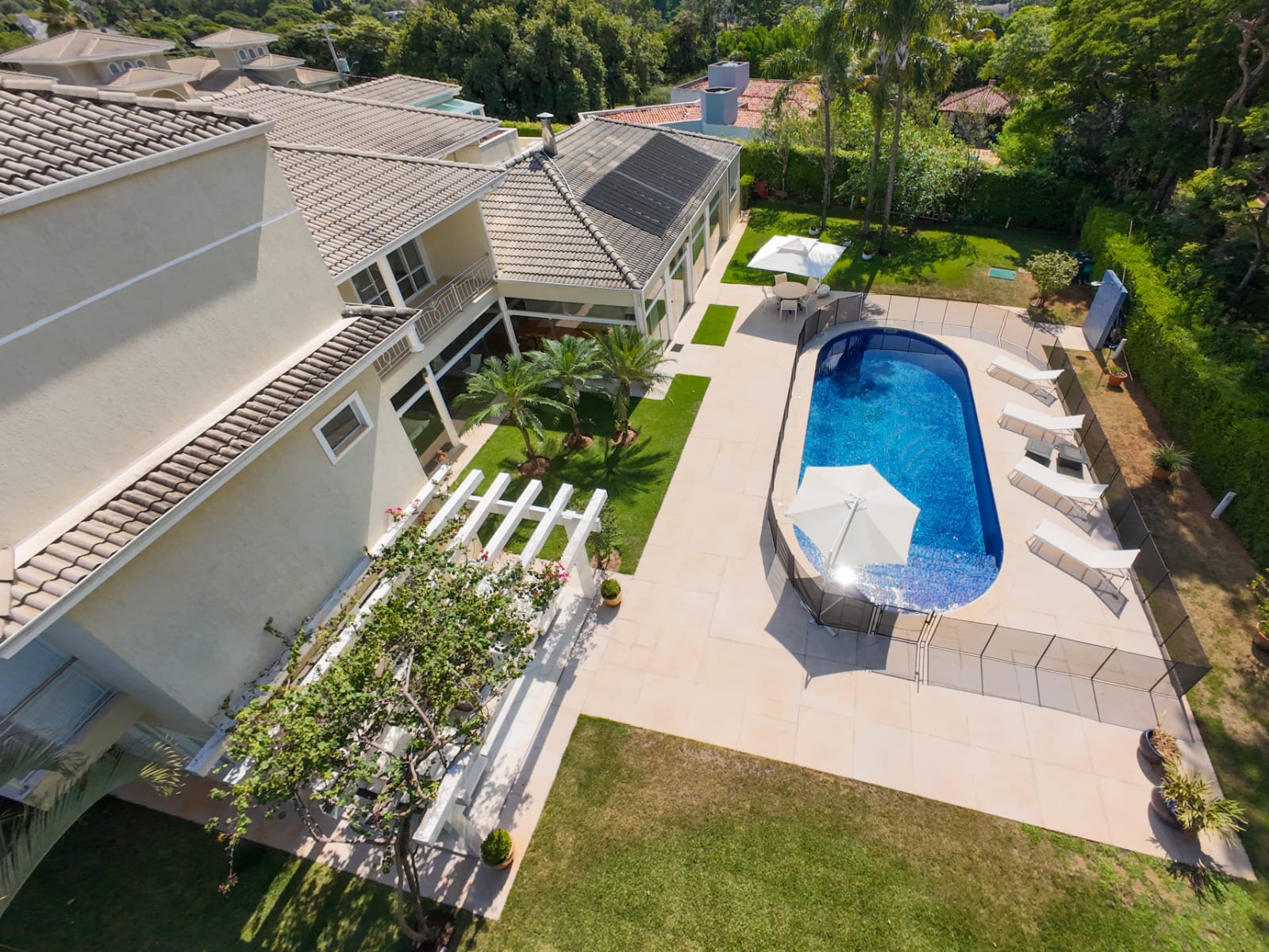 Conta com 4 suítes e uma quinta reversível no térreo, sauna, 2 poços artesianos, espaço gourmet completo, salas com vários ambientes integrados, vaga de garagem coberta para 4 carros.