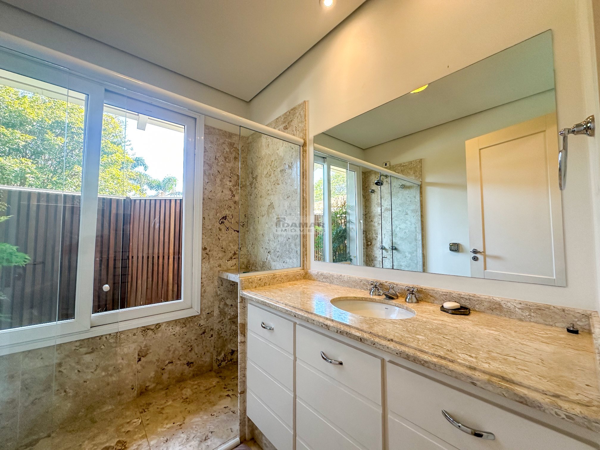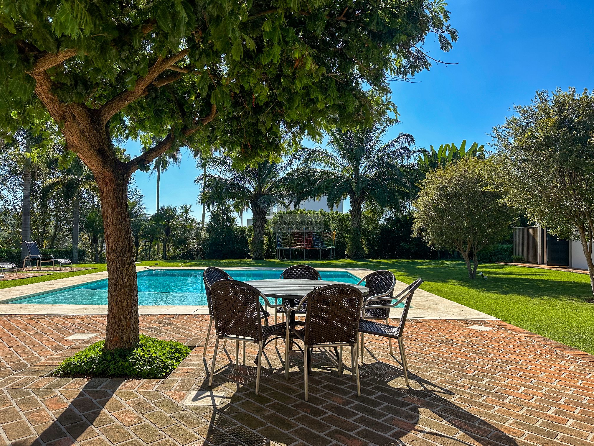 Totalmente térrea, 5 suítes, espaço gourmet integrado à área social, sauna, piscina aquecida e total privacidade, num terreno se esquina de aproximadamente 2.800m² e uma área construída de 680m².