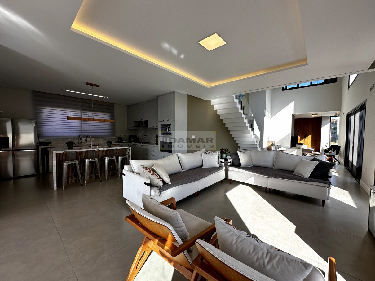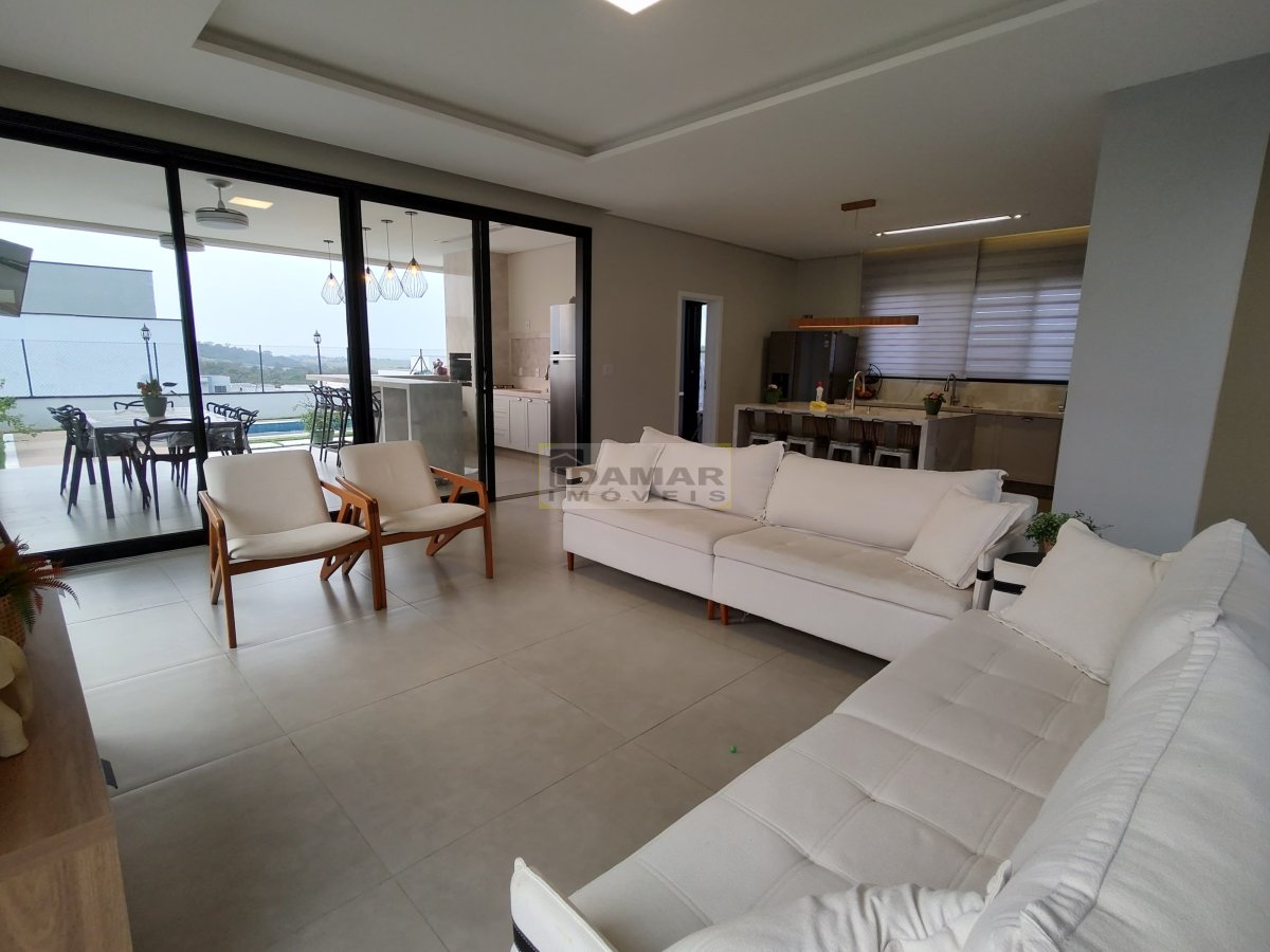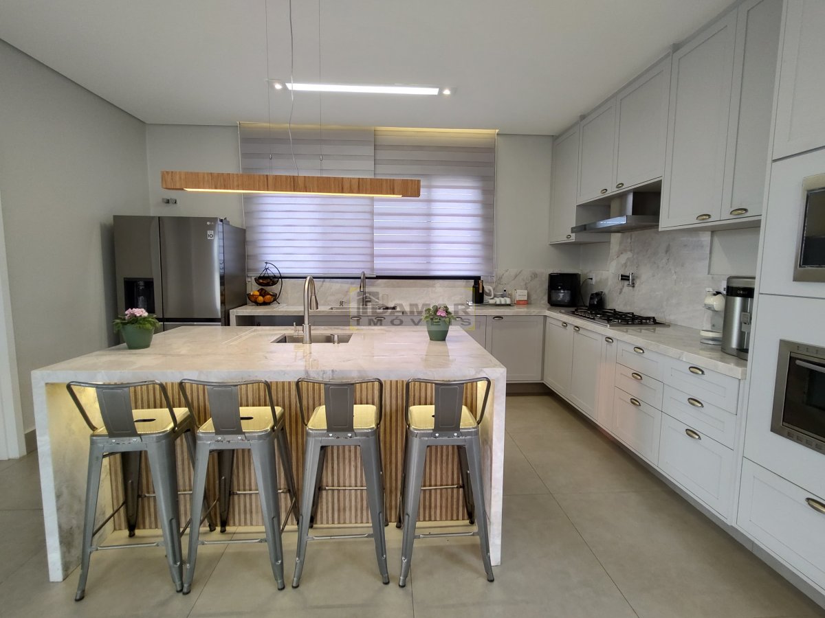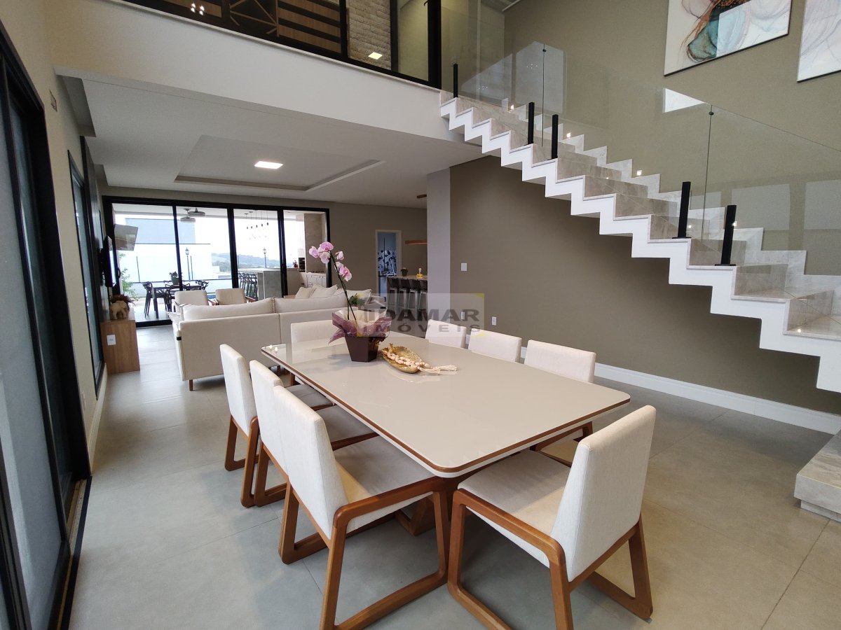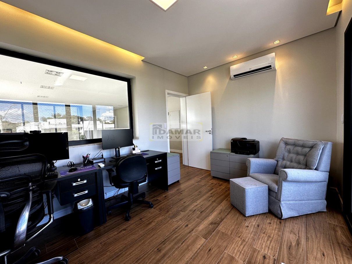 Sala de estar, sala de jantar, copa, adega, cozinha, área de serviço, 2 lavabo, 4 suítes, 3 closet, escritório, área gourmet, varanda, depósito